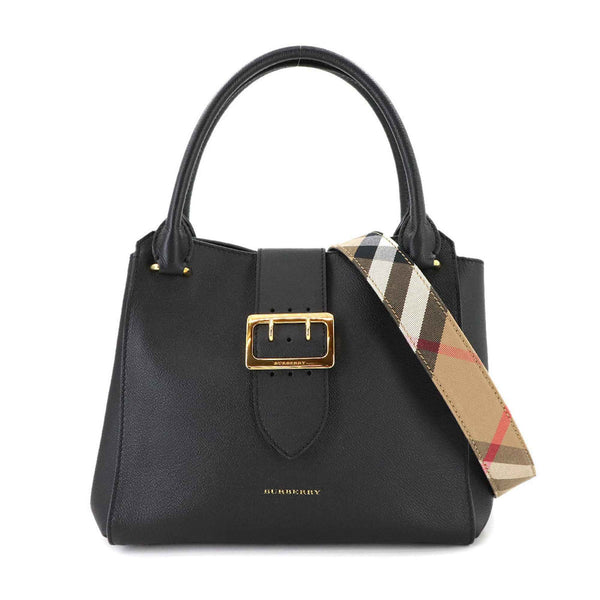 Burberry Buckle Tote Bag, 2-Way Tote/Shoulder Bag in Black Leather with Gold Hardware, 4029022