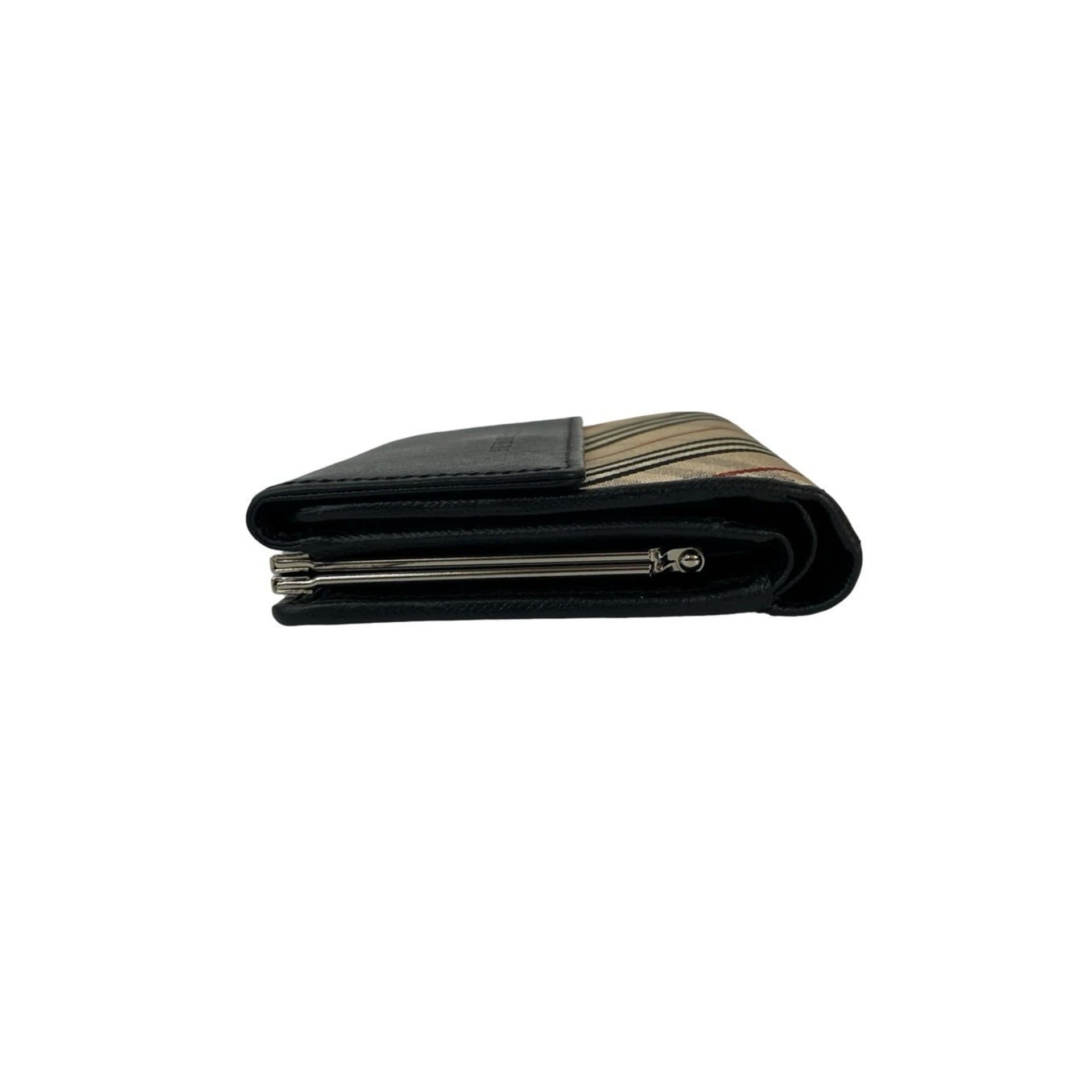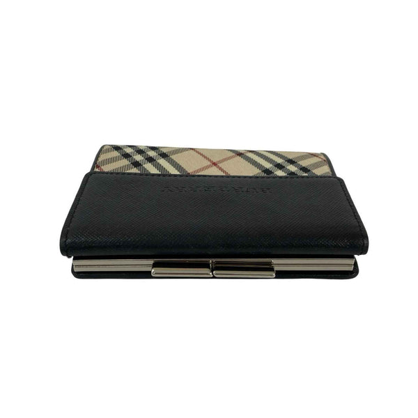 BURBERRY Nova Check Canvas and Leather Clasp Tri-fold Wallet, Black, 60206