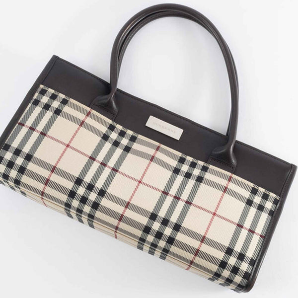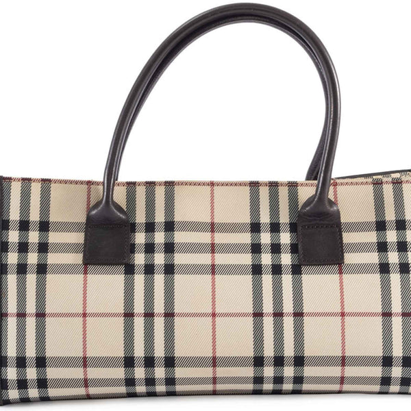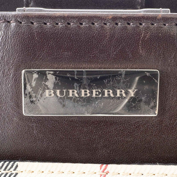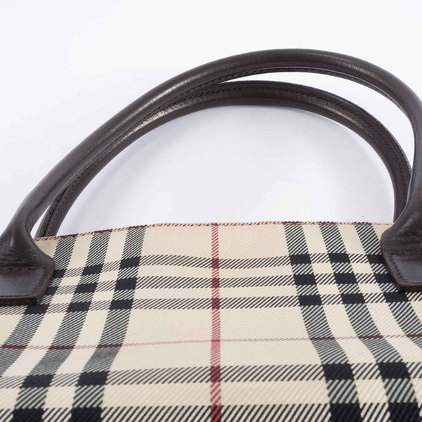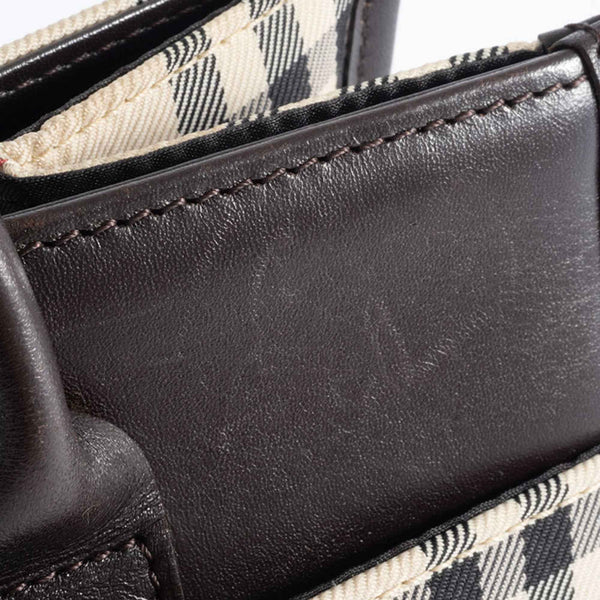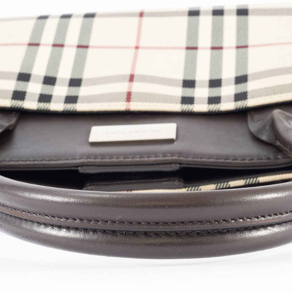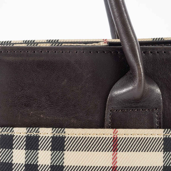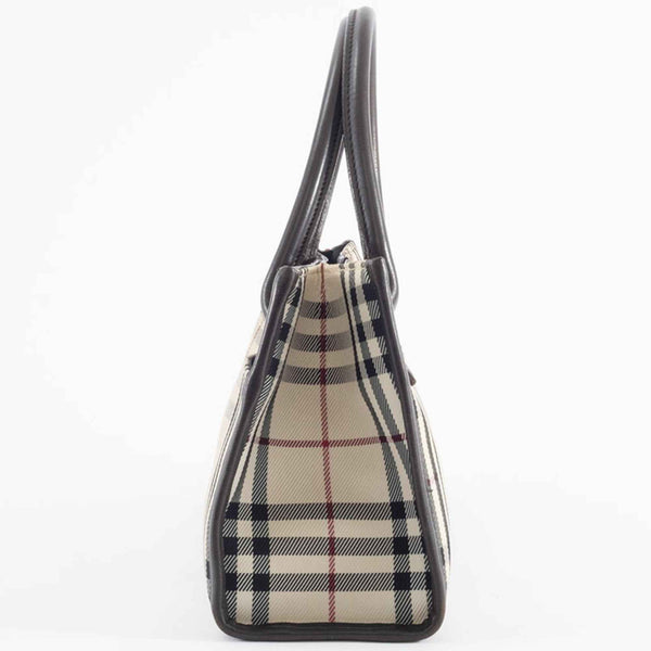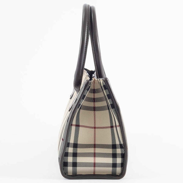 Burberry Nova Check Handbag, Canvas, Leather, Beige, Brown, Women\'s, Horizontal, BURBERRY