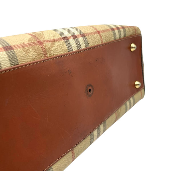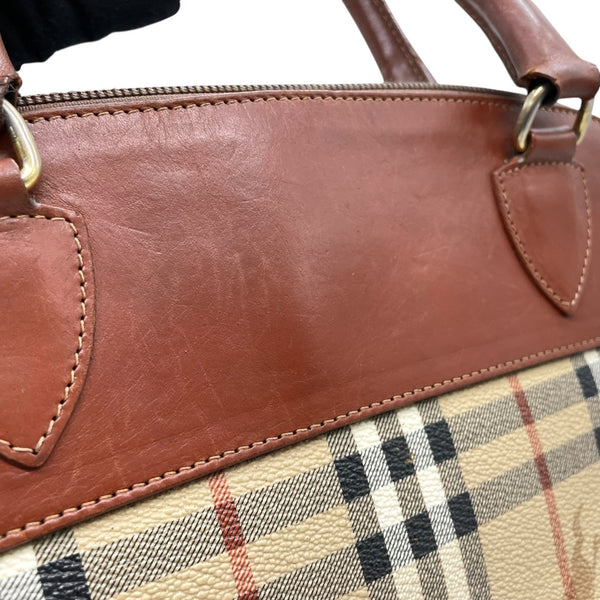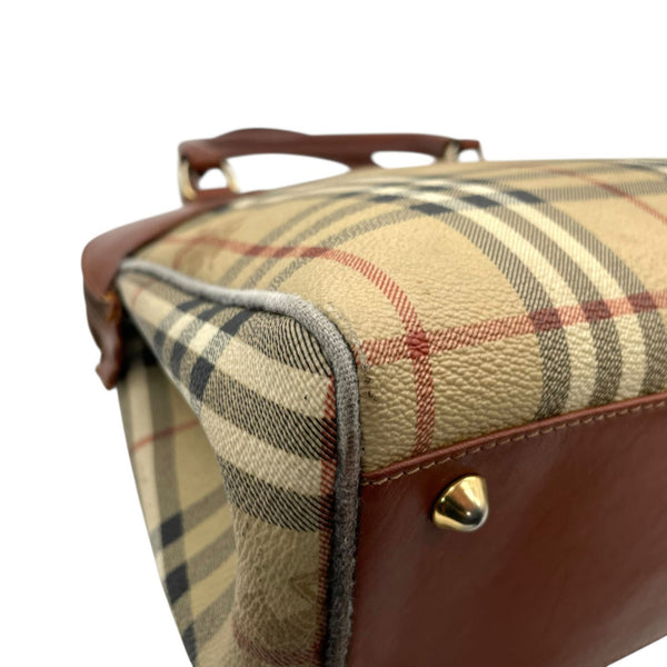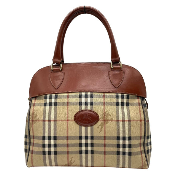 BURBERRY Nova Check Shadow Horse Handbag in Brown and Beige Leather with Gold Hardware, Women\'s, A1