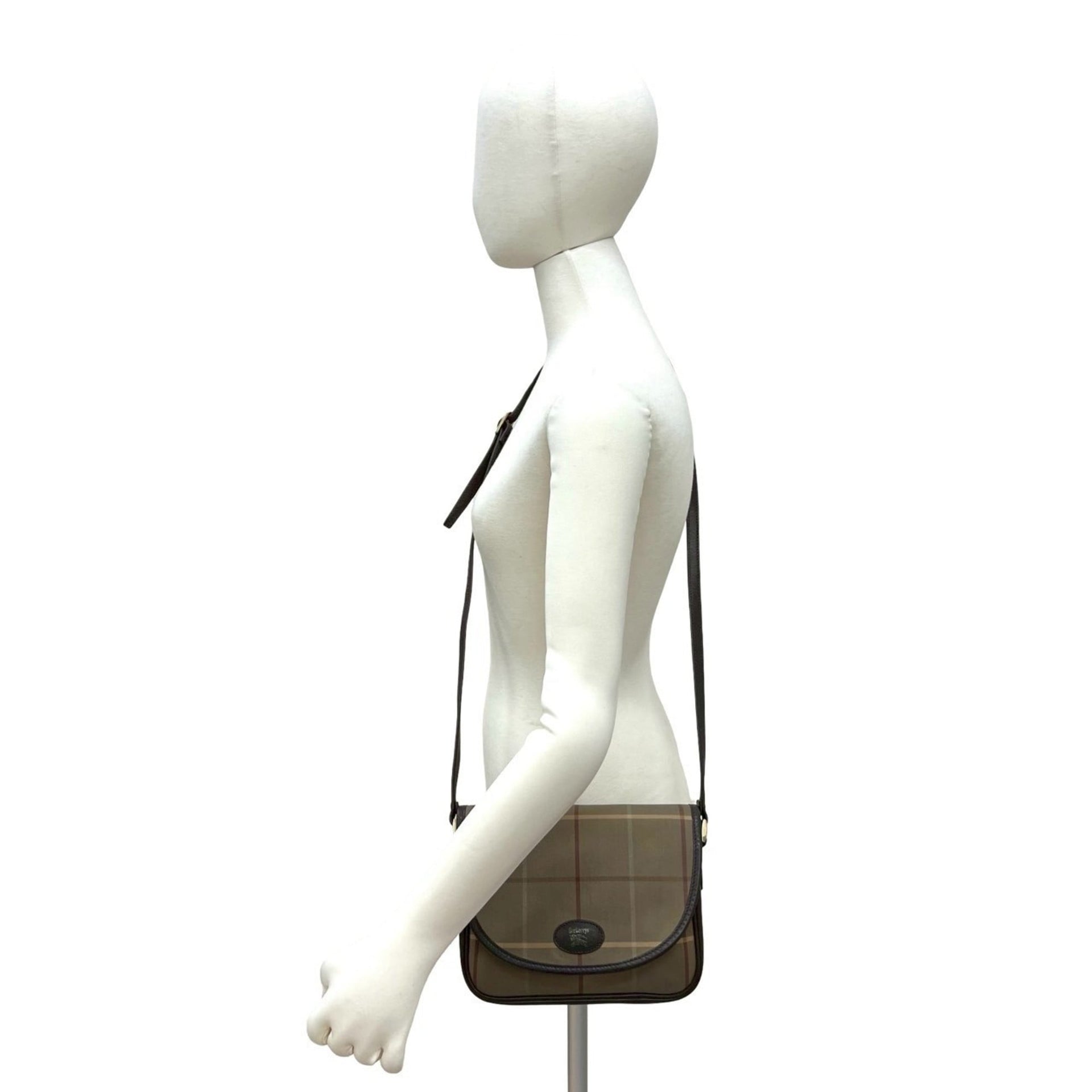 Burberry\'s Shadow Horse logo check canvas and leather shoulder bag, brown, 92094