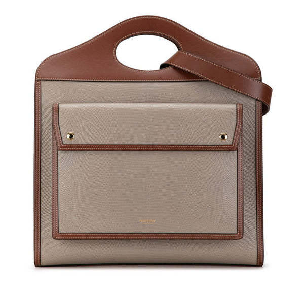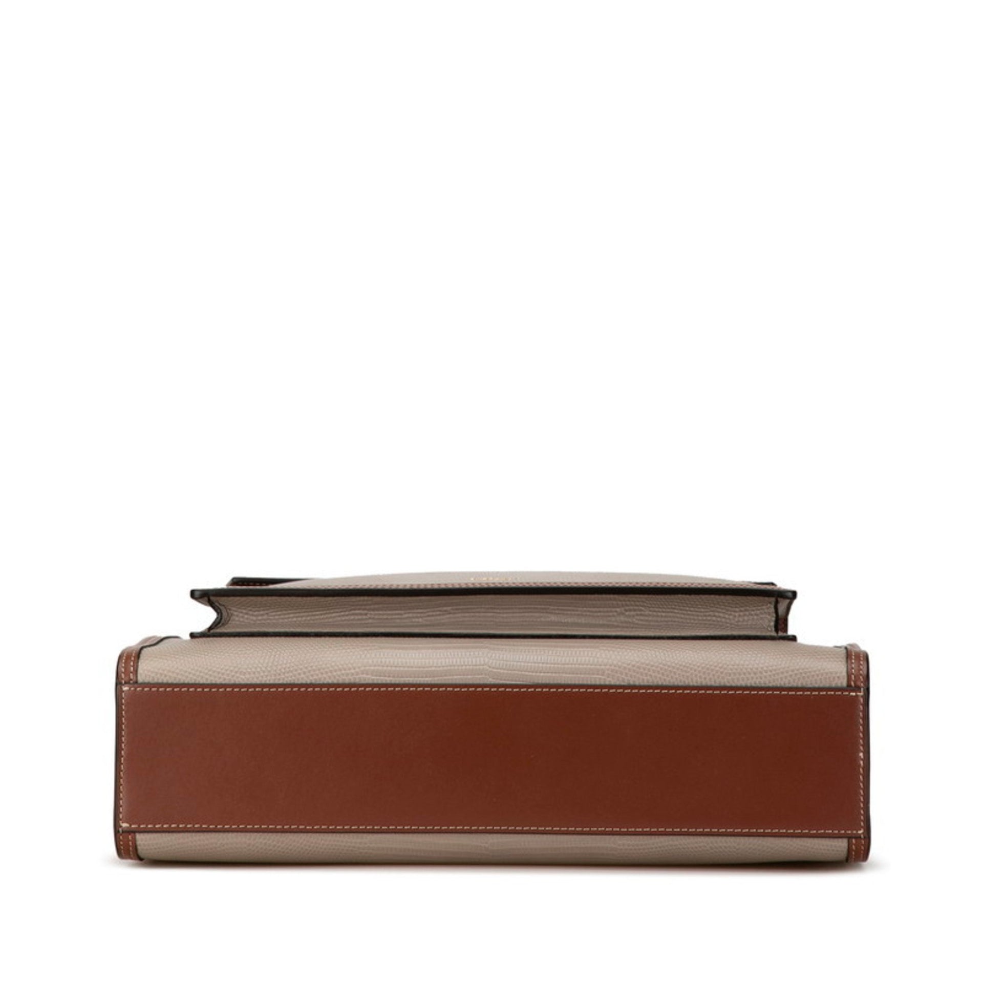 Burberry Topstitched Crocodile Embossed Handbag Shoulder Bag 2WAY Grey Brown Leather Women\'s BURBERRY