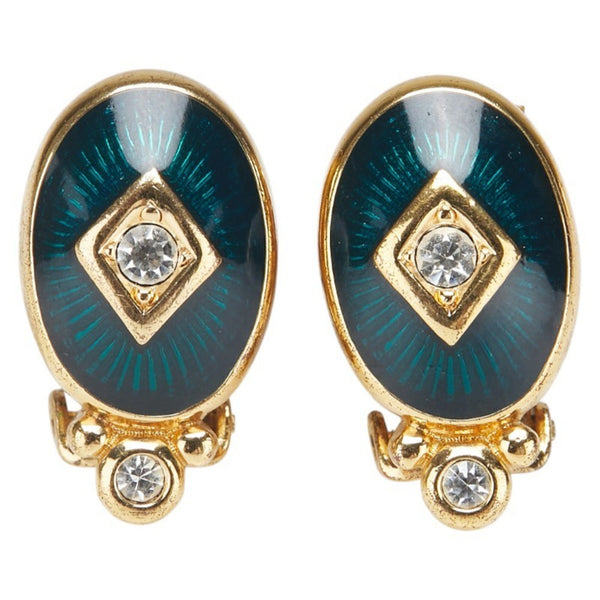 Burberry Vintage Oval Rhinestone Earrings, Gold and Green Plated, Women\'s