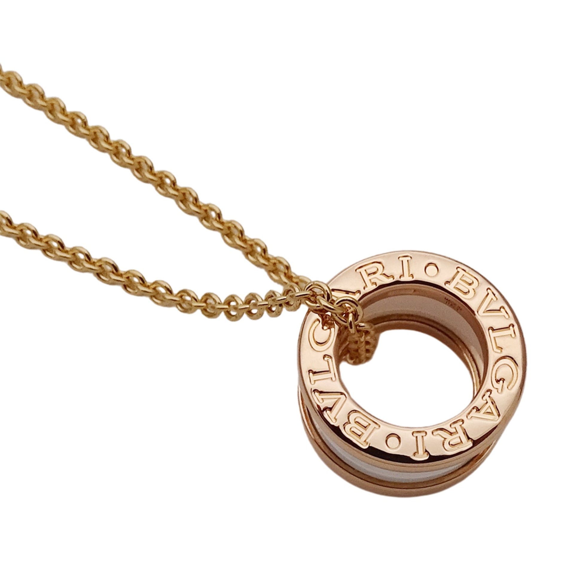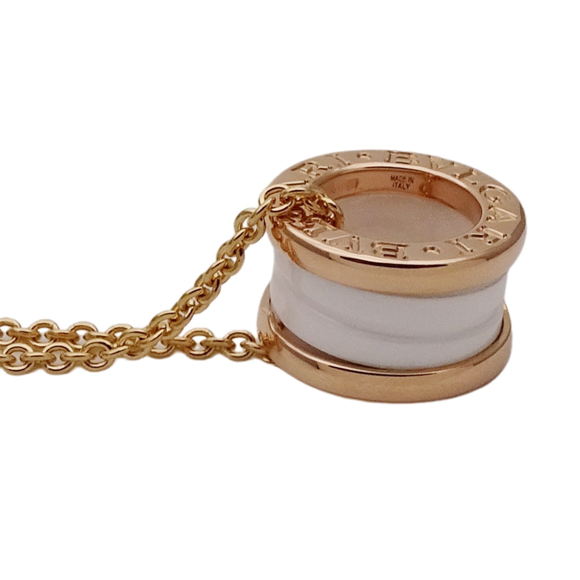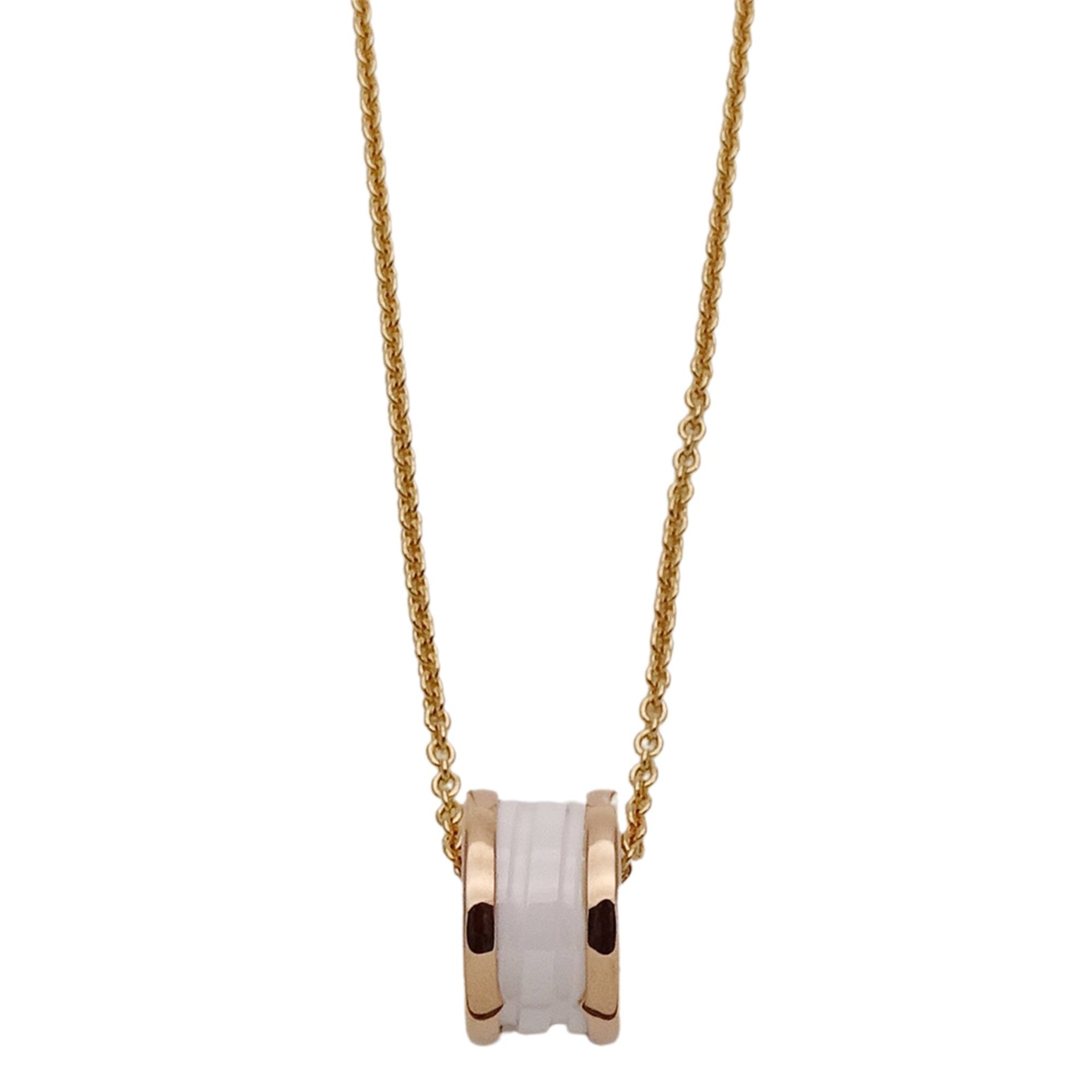 BVLGARI B-zero1 necklace for men and women, polished in 750PG white ceramic pink gold.