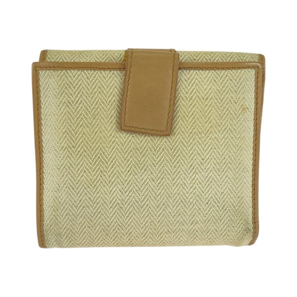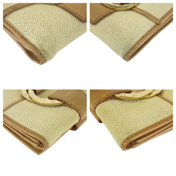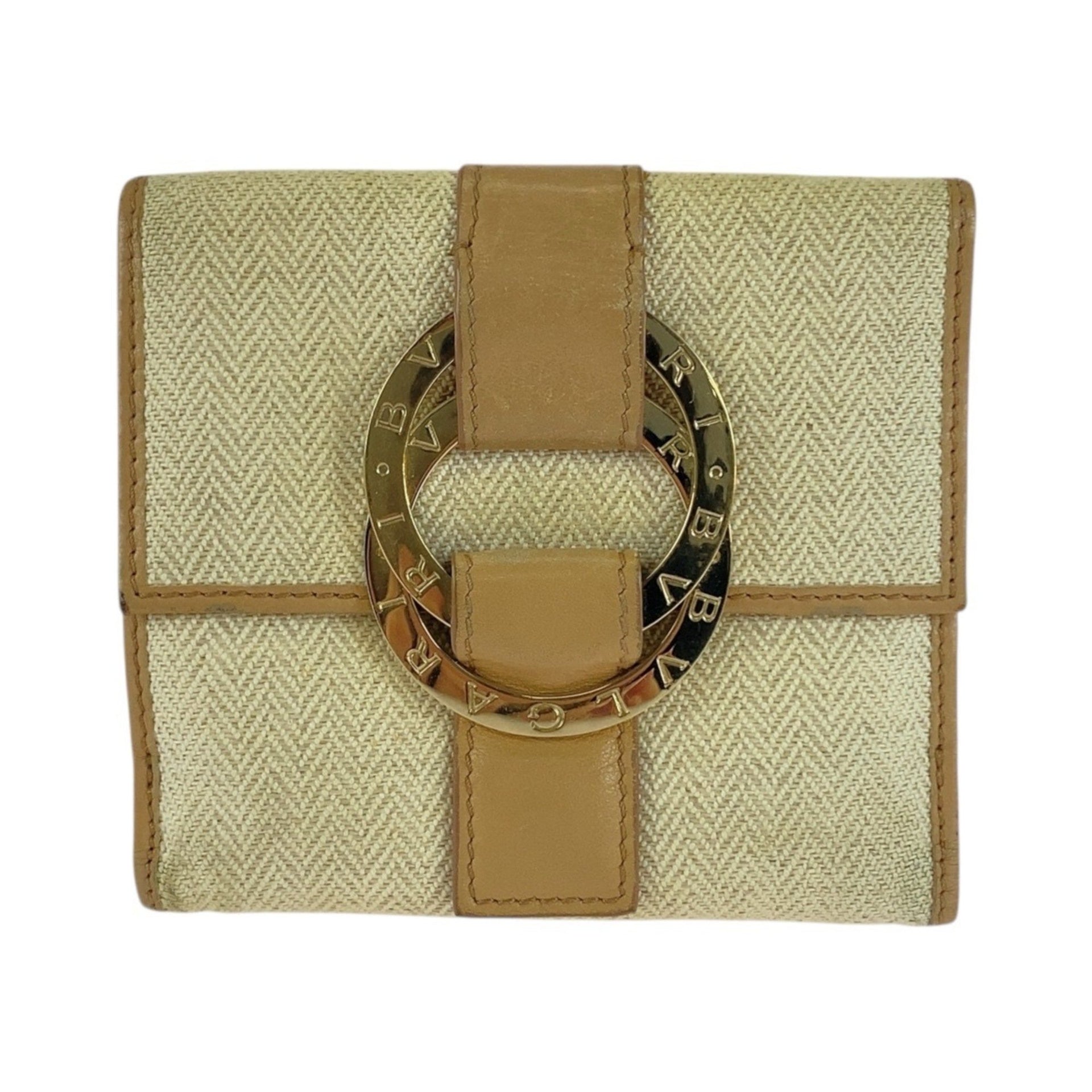BVLGARI Chandra Beige Tweed/Leather Compact Folding Wallet (12661695) with Gold Hardware, Women\'s