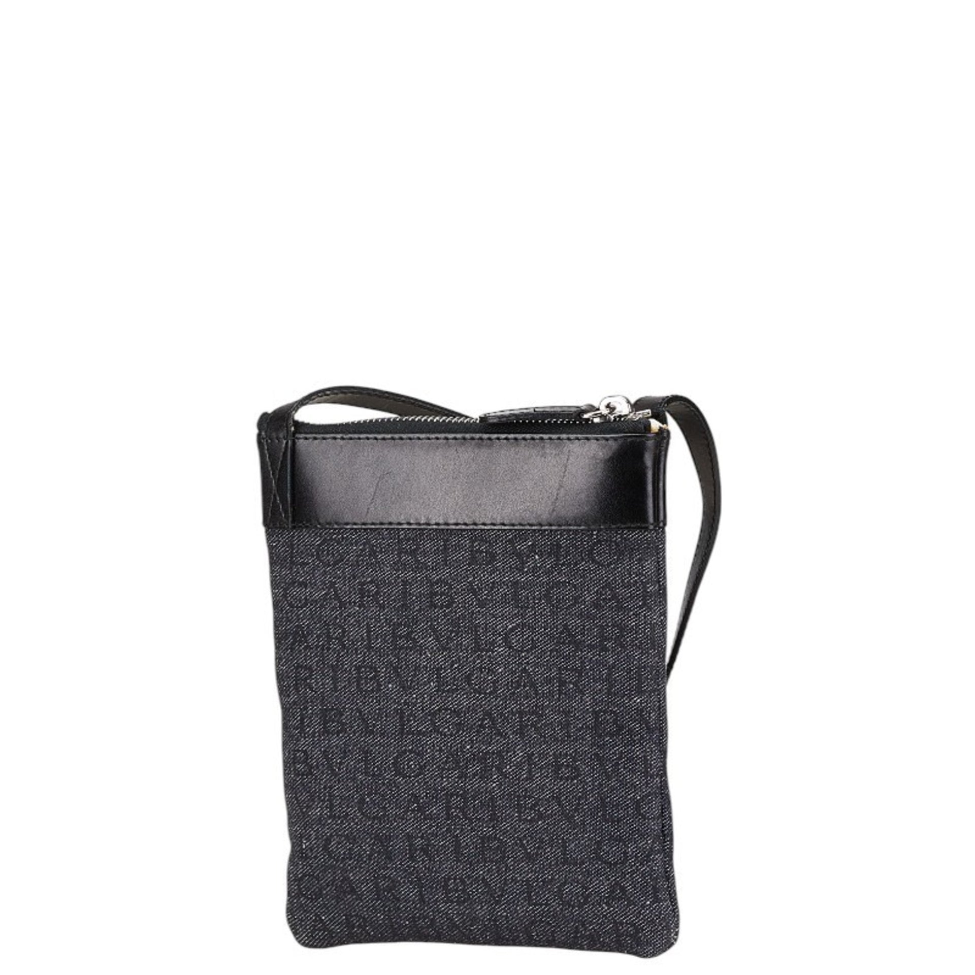BVLGARI Logomania Shoulder Bag in Blue and Black Canvas Leather for Women