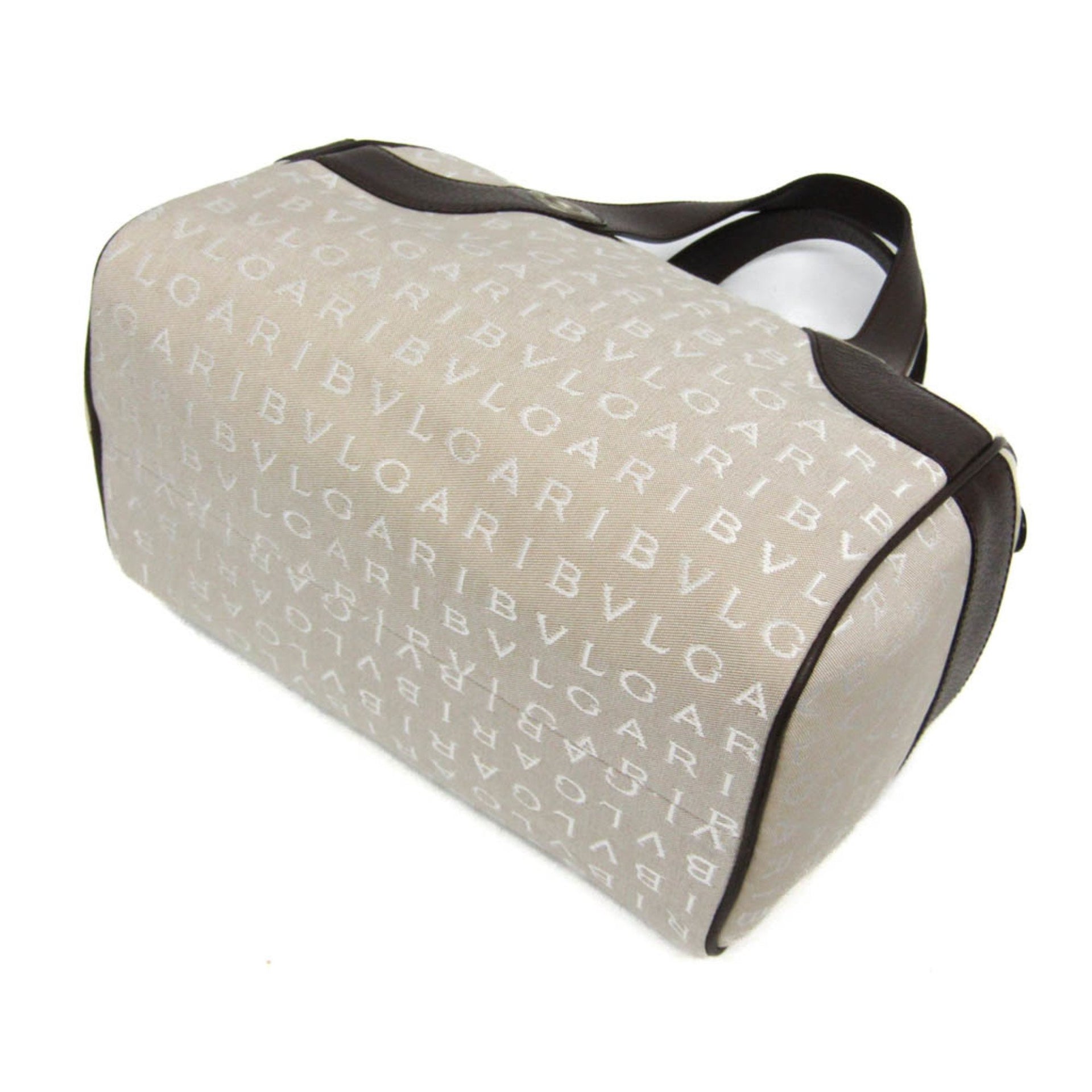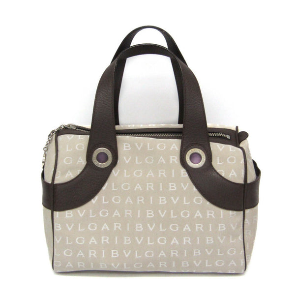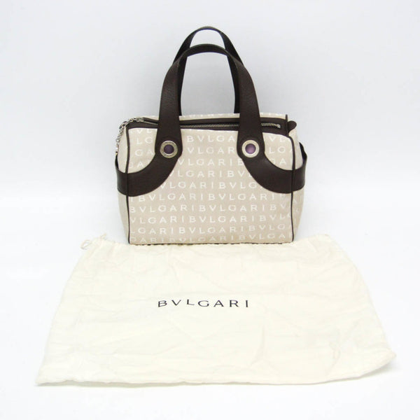 Bvlgari Logomania Winona Boston Small Women\'s Canvas,Leather Boston Bag,Handbag Brown,Light Beige