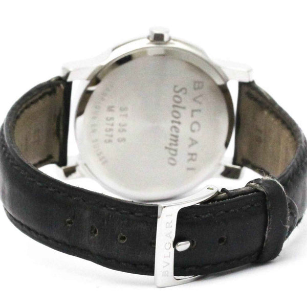 BVLGARI Solotempo Steel Leather Quartz Mens Watch ST35S Polished