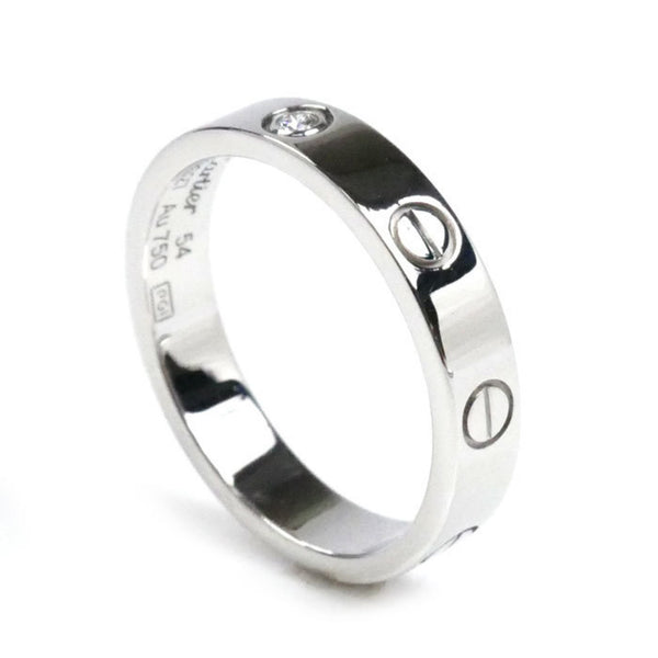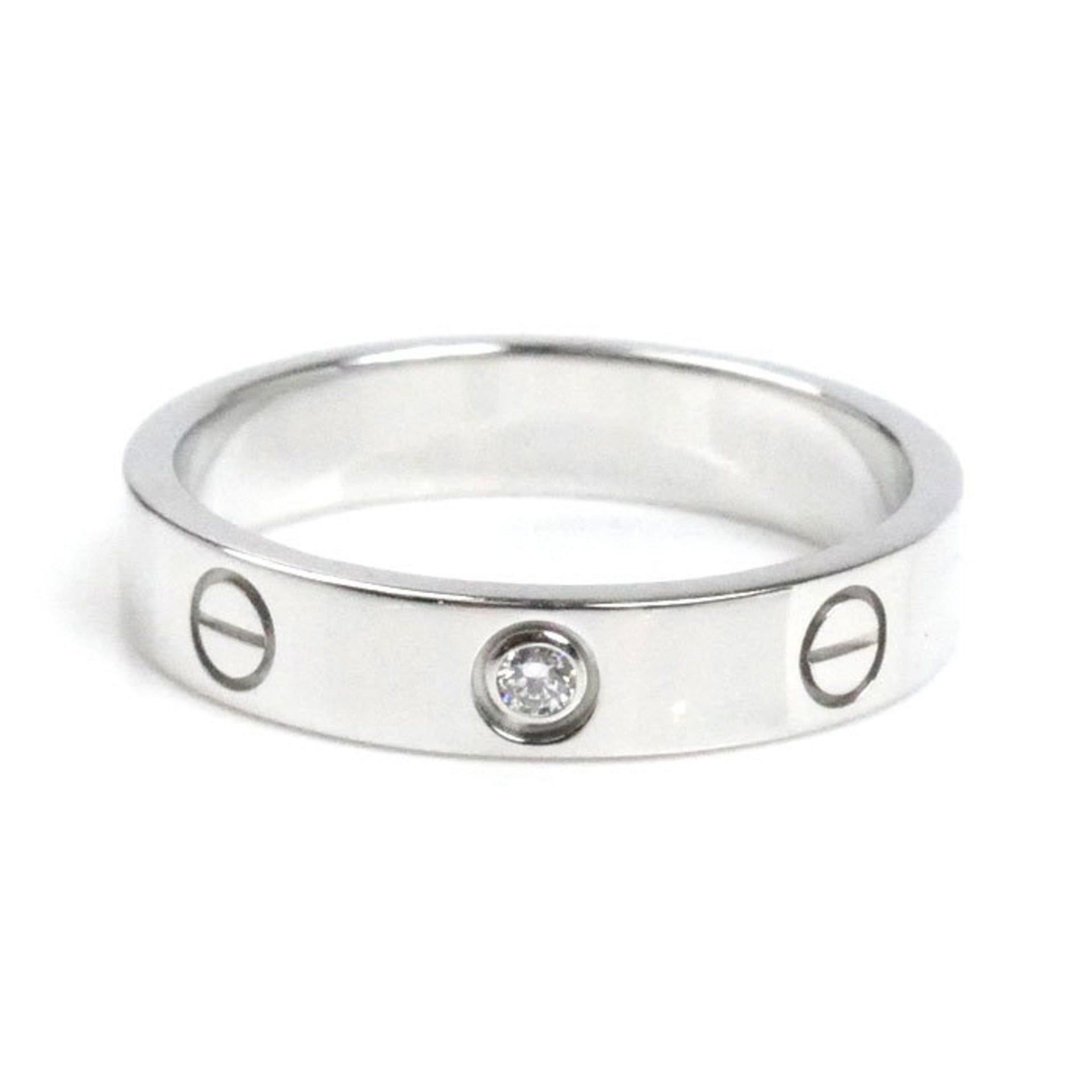CARTIER 18KWG White Gold Mini Love 1P Diamond Ring B4050554 Size 14 54 4.8g Women\'s