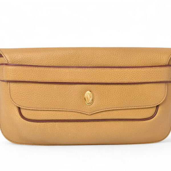 Cartier clutch bag, pouch, Must Line, leather, camel