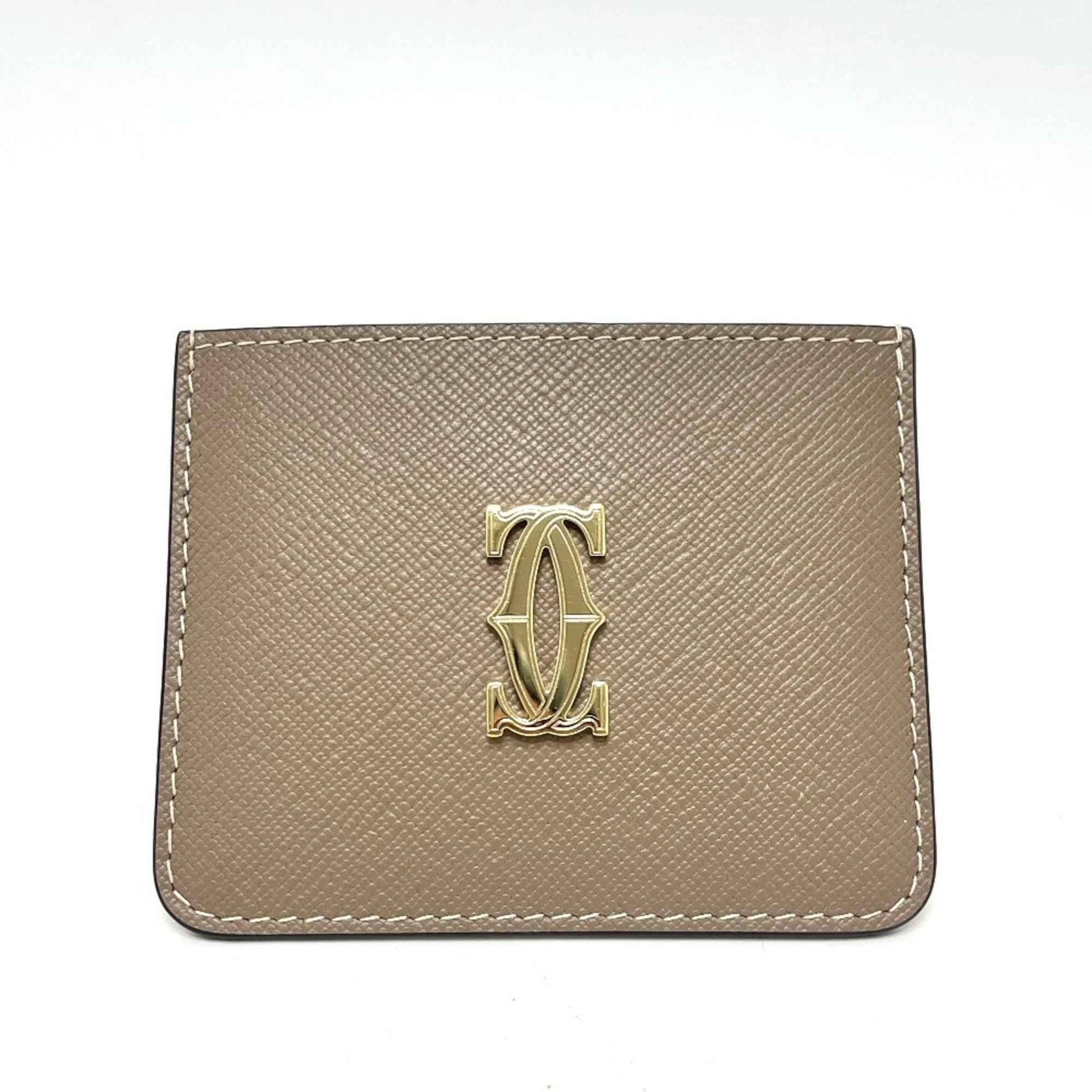 CARTIER de Cartier Card Holder C (L3002496), Pass Case, Commuter Business Calf Leather, Women\'s, Beige, Like New