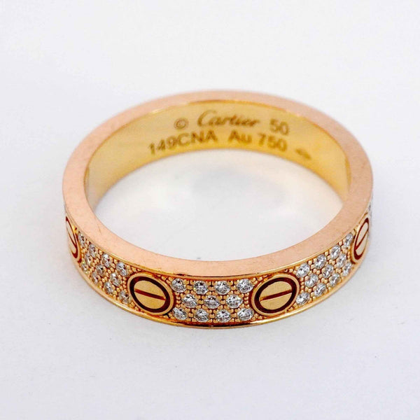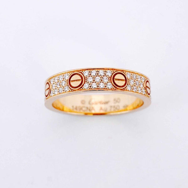 Cartier Mini Love Pavé Ring in 18K Pink Gold with Diamonds, #50 for Women