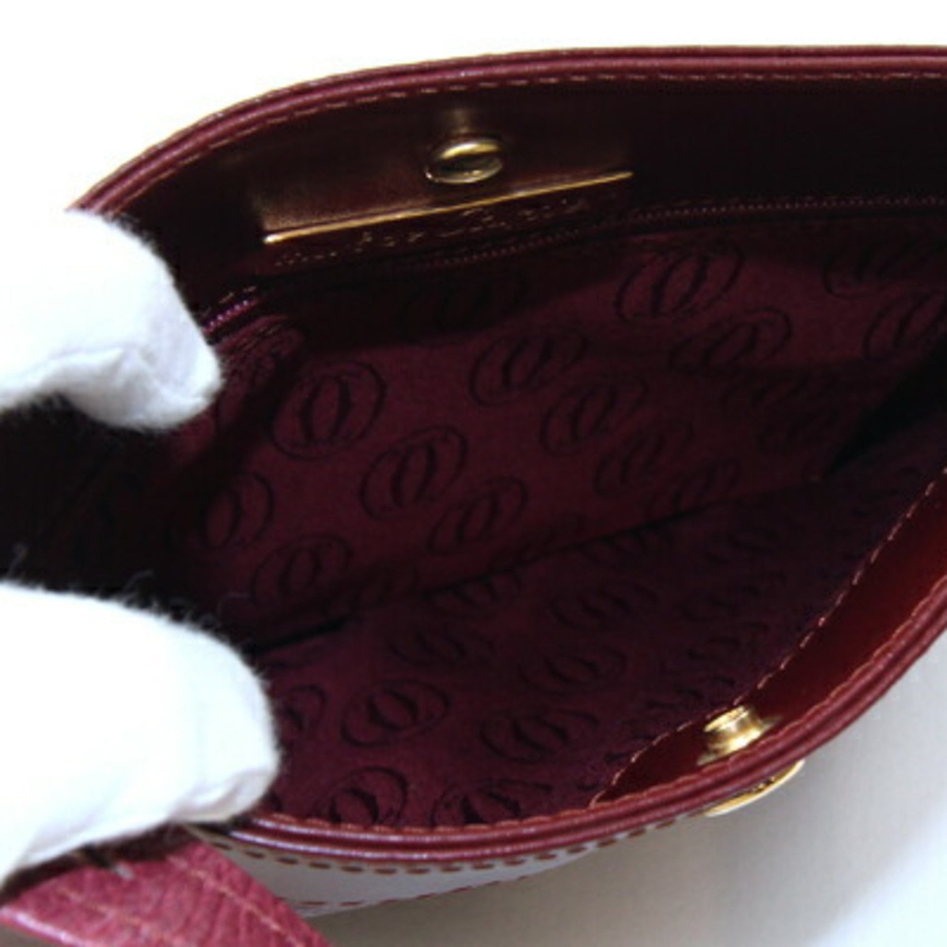 Cartier Must Shoulder Bag, Bordeaux Leather, No Gusset, Crossbody, Trinity, Old, Women\'s