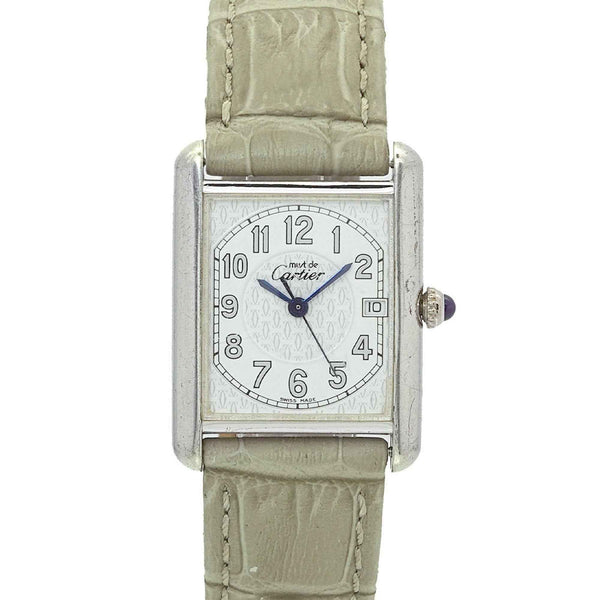 Cartier Must Tank LM Boys\' Watch with Date Display, White Dial, SV925 Quartz Movement