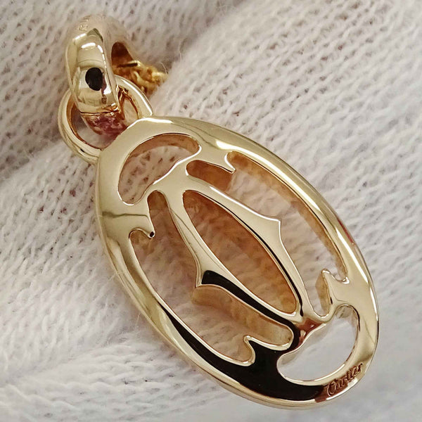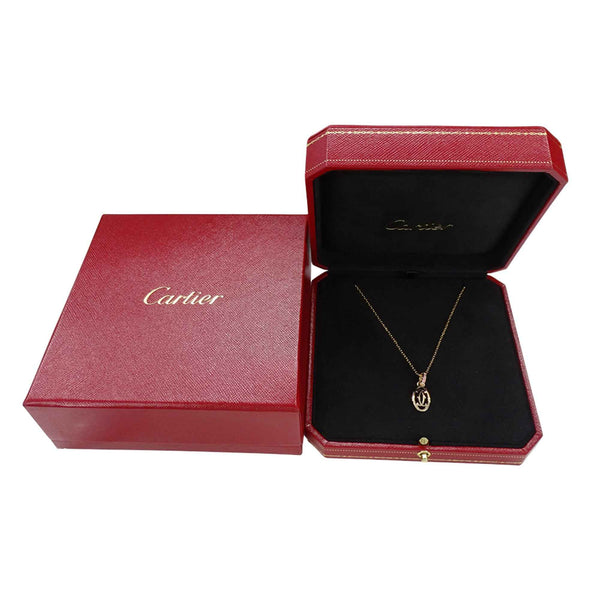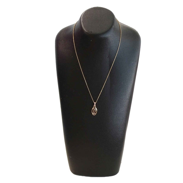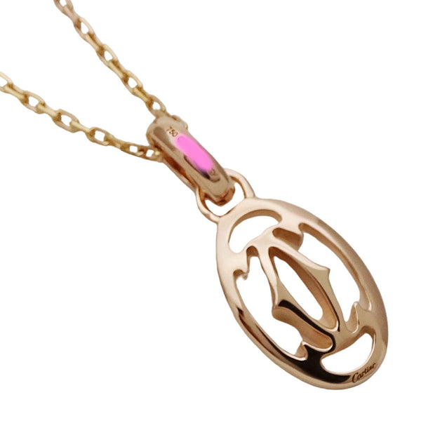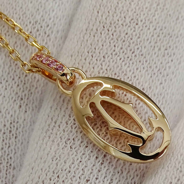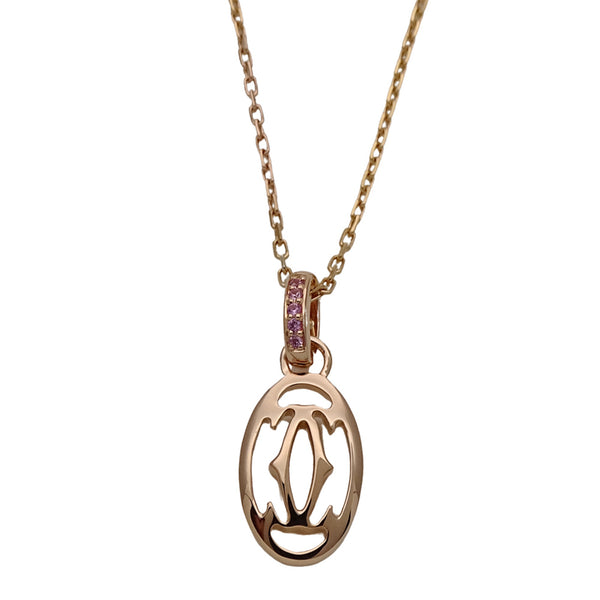 Cartier necklace for women, brand name 750PG pink gold with sapphire and logo double C, polished.