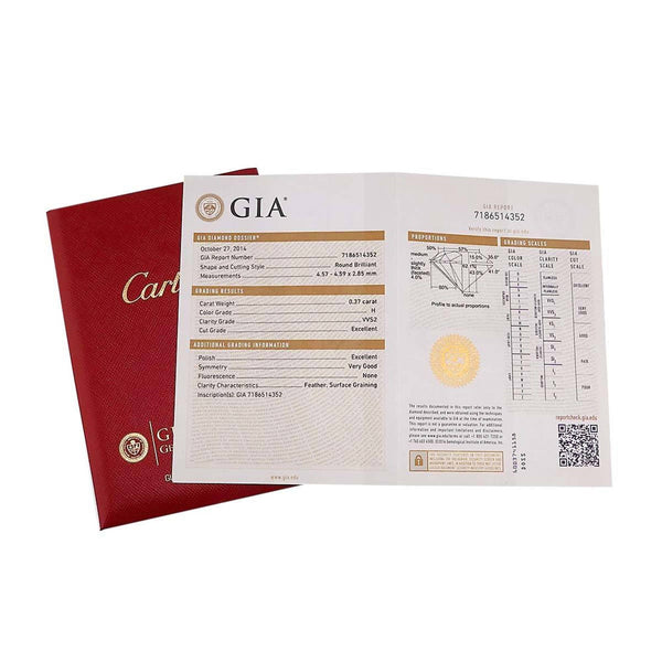 Cartier Solitaire Ring with 0.37ct Diamond, H VVS2 EX #48, Platinum