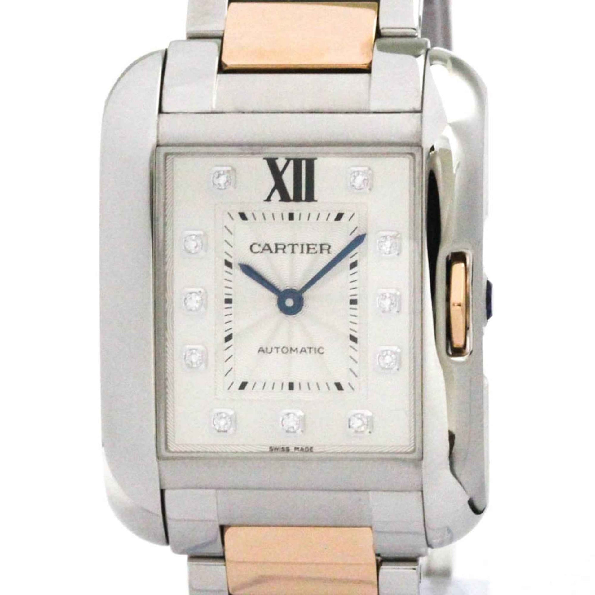 CARTIER Tank Anglaise LM Diamond 18K Pink Gold Steel Unisex Watch WT100025
