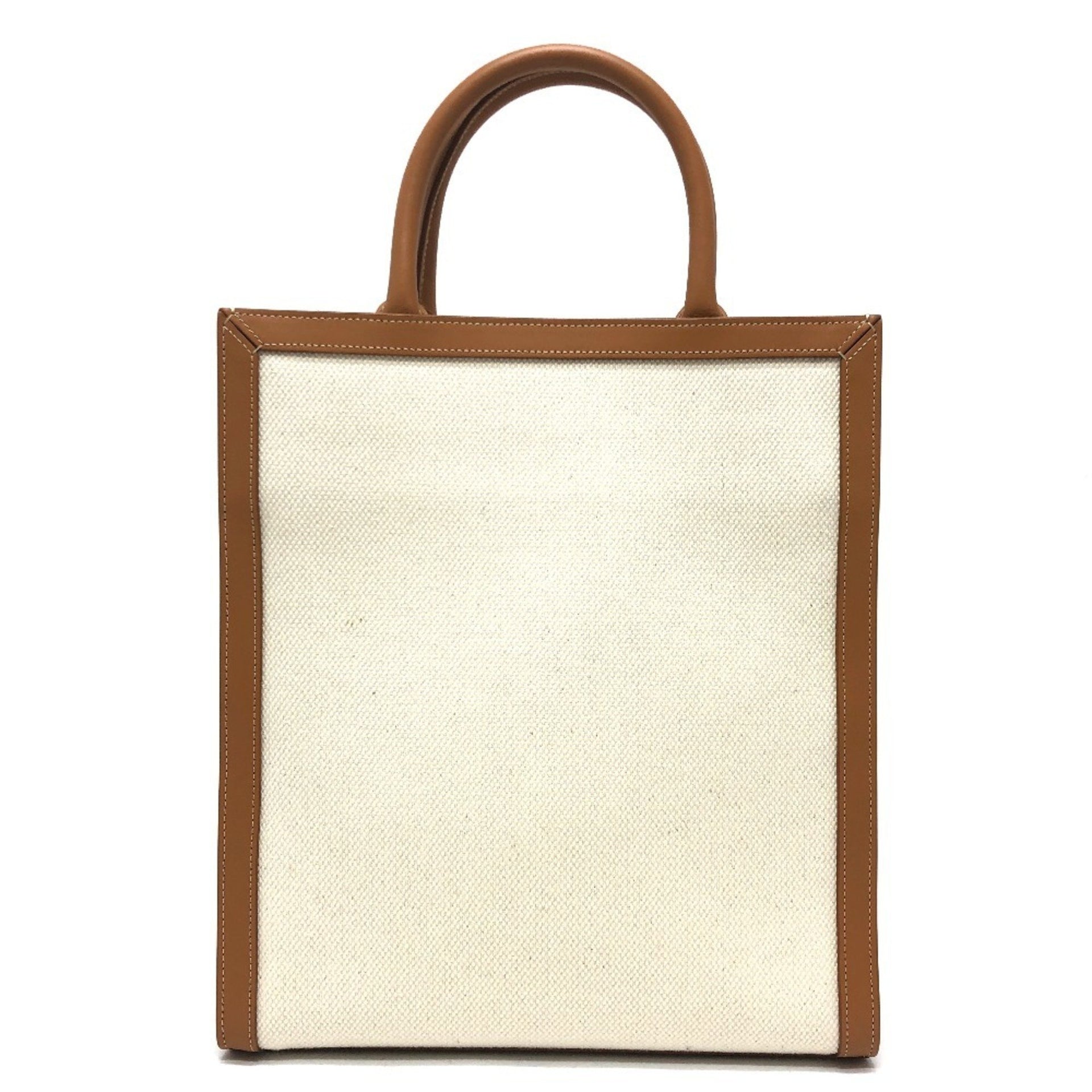 CELINE 192082BNZ.02NT Small Vertical Cabas 2WAY Bag Handbag Shoulder Crossbody Tote Leather Canvas Women\'s Beige x Brown