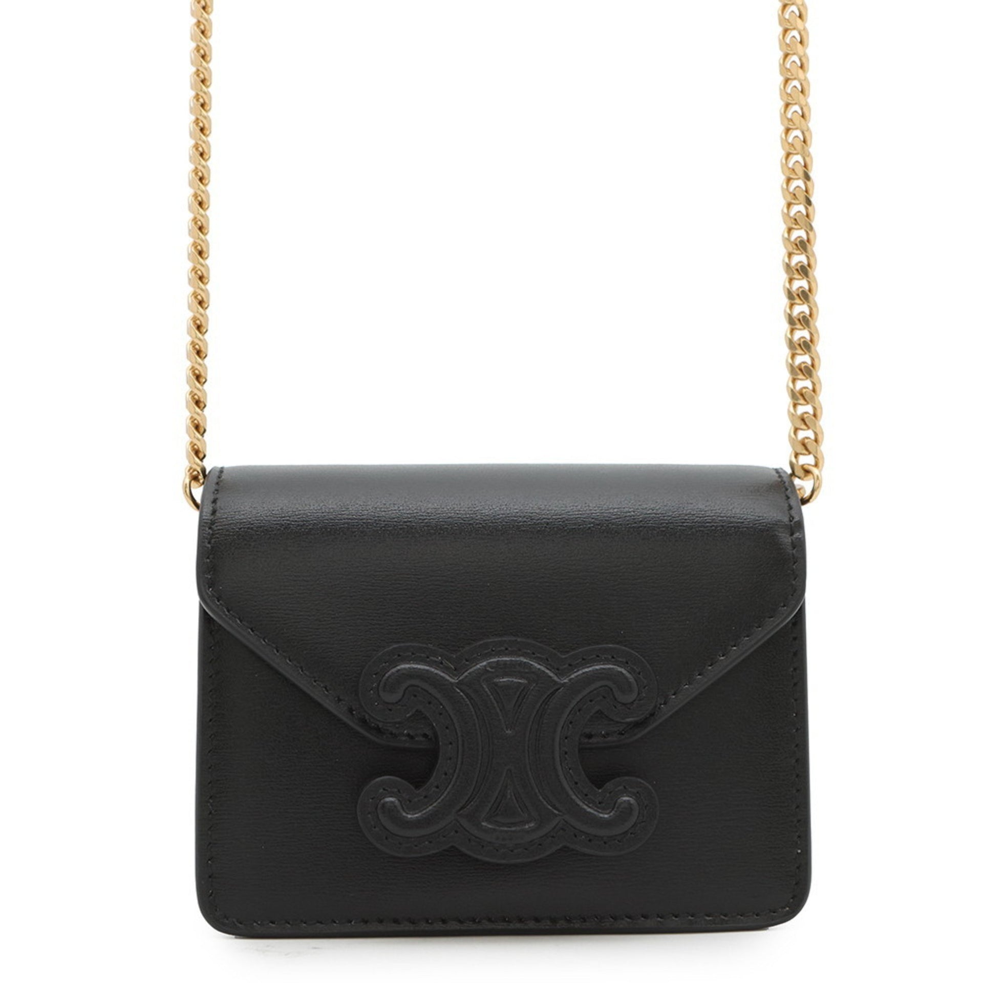 CELINE Business Card Holder/Card Case Triomphe Holder Leather 10J743DPV Black Wallet