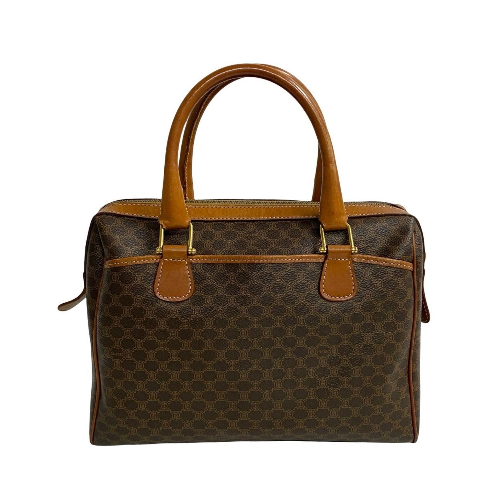 CELINE Macadam Blason with Triomphe Logo and Leather Mini Boston Bag, Brown, 30221