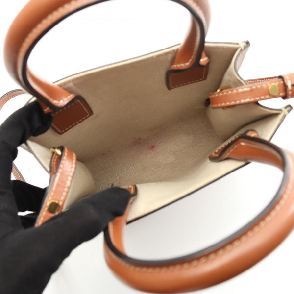 CELINE Mini Vertical Cabas Handbag Canvas Leather Women\'s Ivory Brown 193302