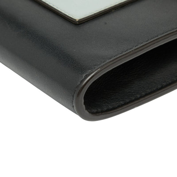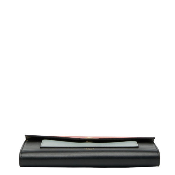 Celine Pocket Tri-Folded Chain Wallet Shoulder Bag in Black, Orange, and Gray Leather for Women.