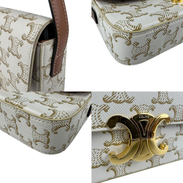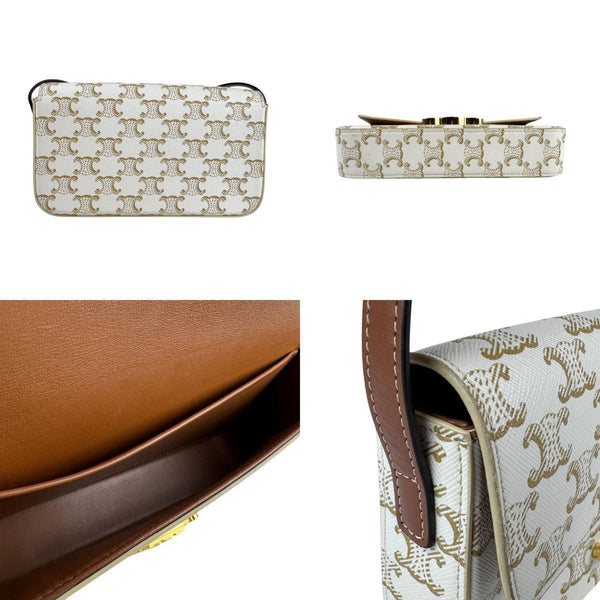 Celine Triomphe Coated Canvas Shoulder Bag, White/Gold, Women\'s, Z6422