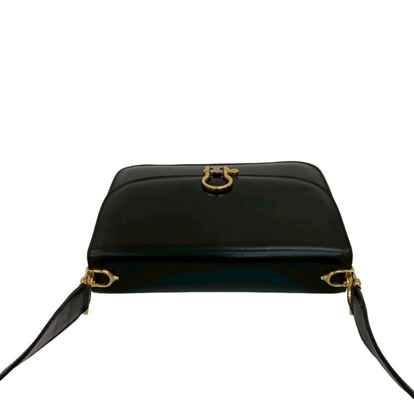 CELINE Triomphe Logo Hardware Calfskin Leather Shoulder Bag Pochette Black 29017