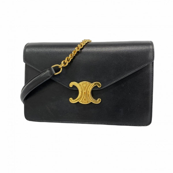 Celine Triomphe Margot Shoulder Wallet in Black Leather for Women