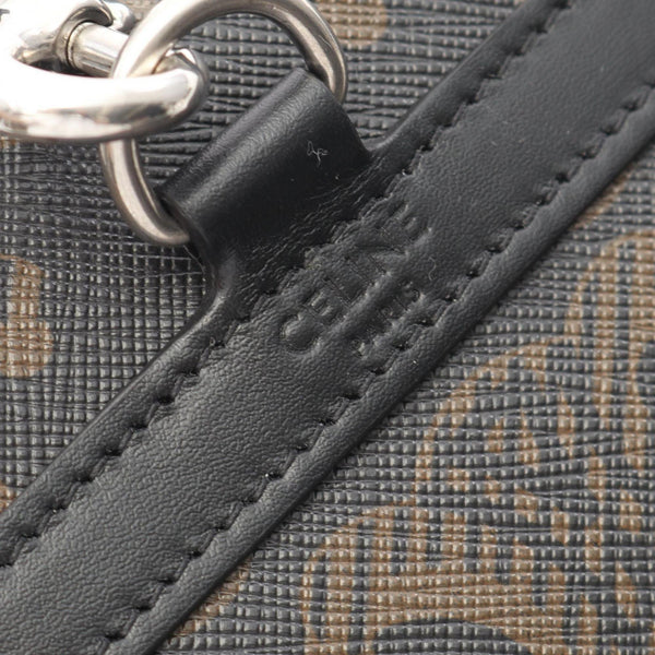 Celine Triomphe Shoulder Bag, PVC-Coated Canvas and Leather, Women\'s, Black/Brown, 110052EKK