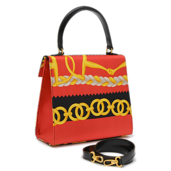 Celine Vintage Hand Shoulder Bag with Scarf Pattern in Red and Black