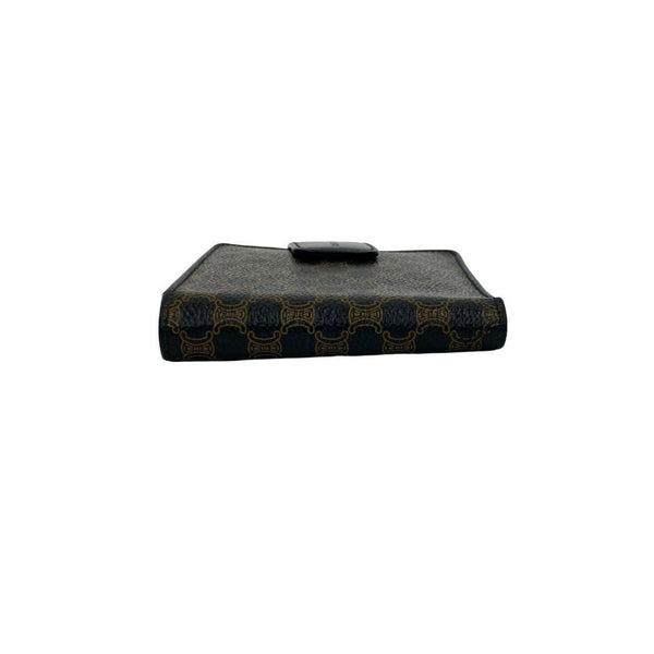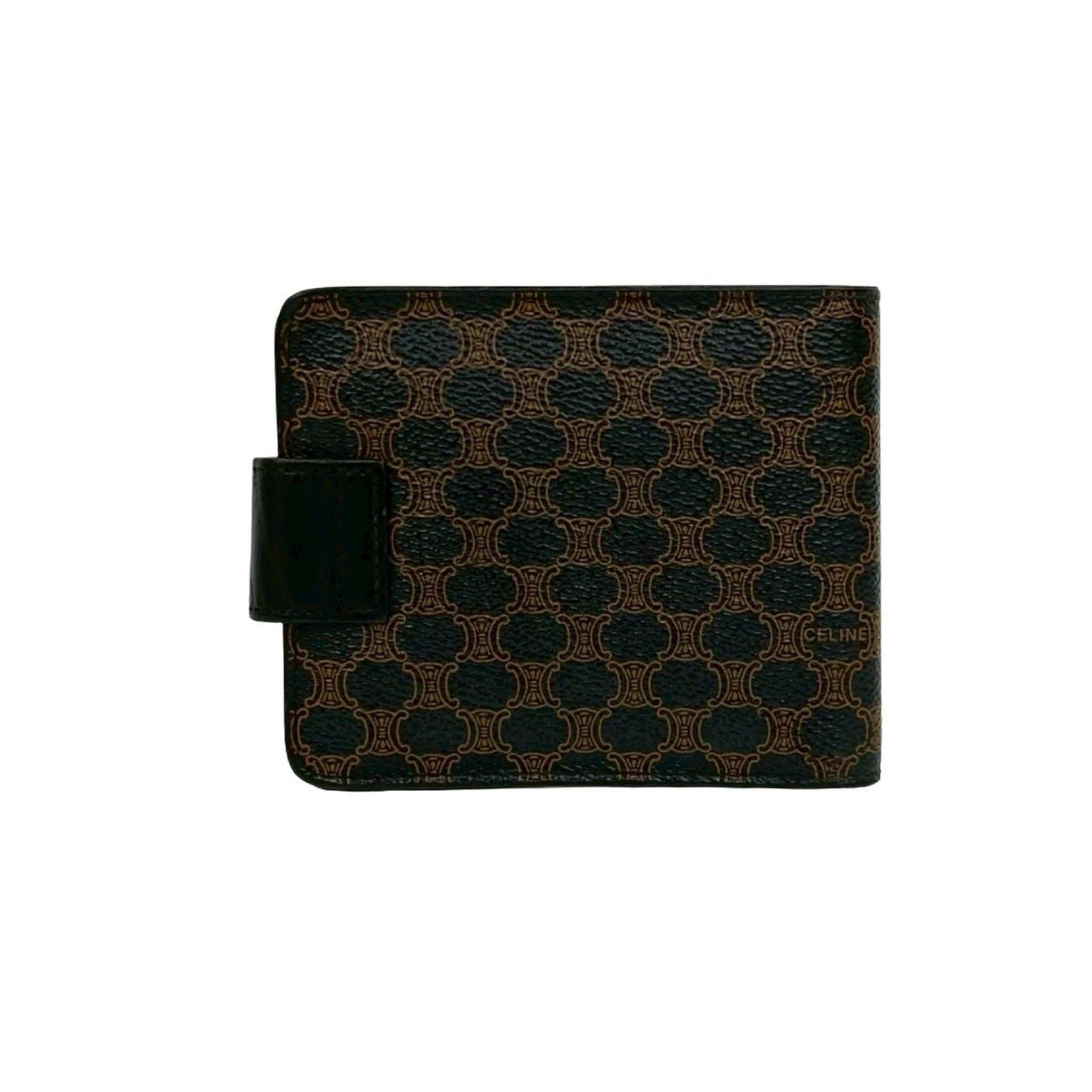CELINE Vintage Macadam Blason Triomphe Leather Bi-fold Mini Wallet in Black and Brown (36494)