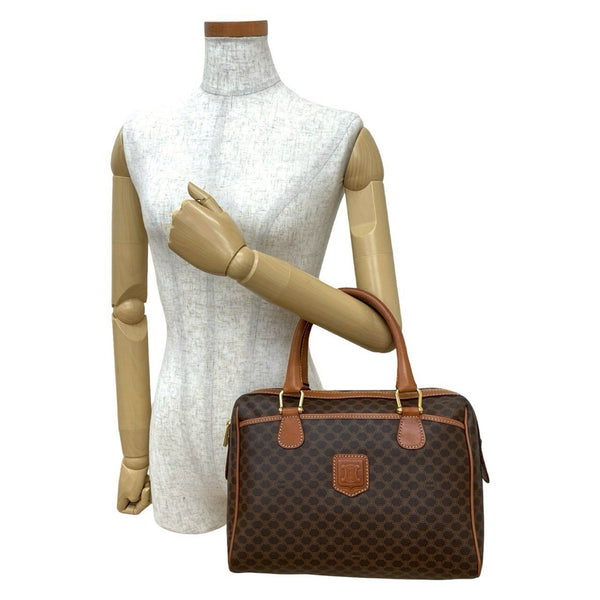 CELINE Vintage Macadam Blason with Triomphe Logo Leather Handbag/Mini Boston Bag, Brown, 73261