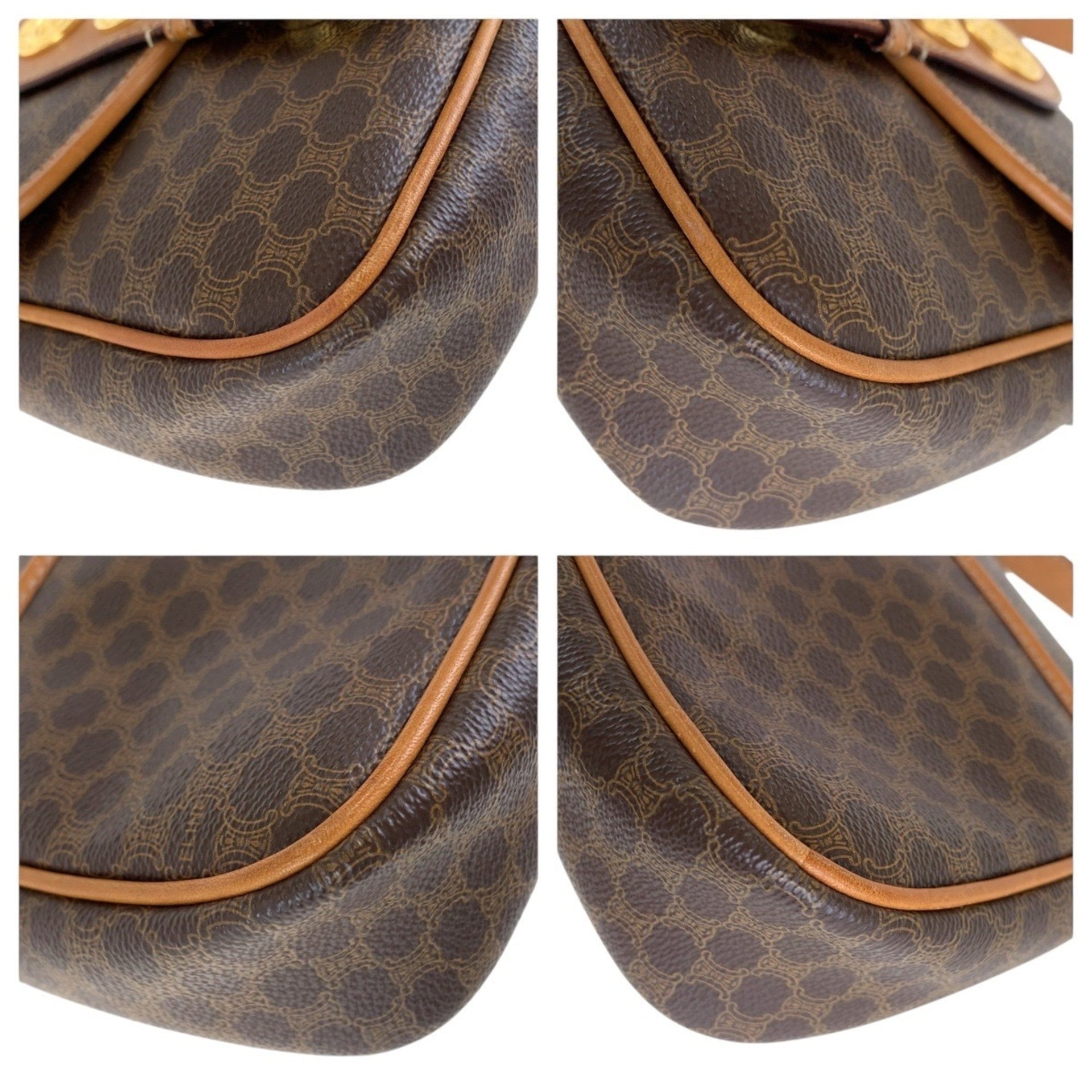 CELINE Vintage Macadam Medal Brown Gold Hardware Leather Shoulder Bag Pochette for Women