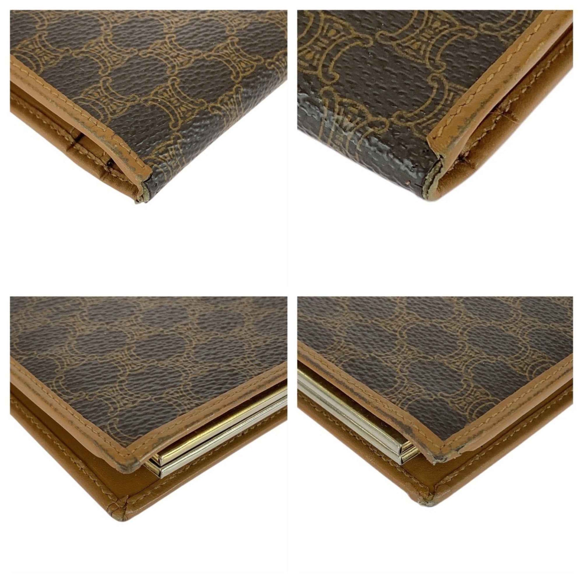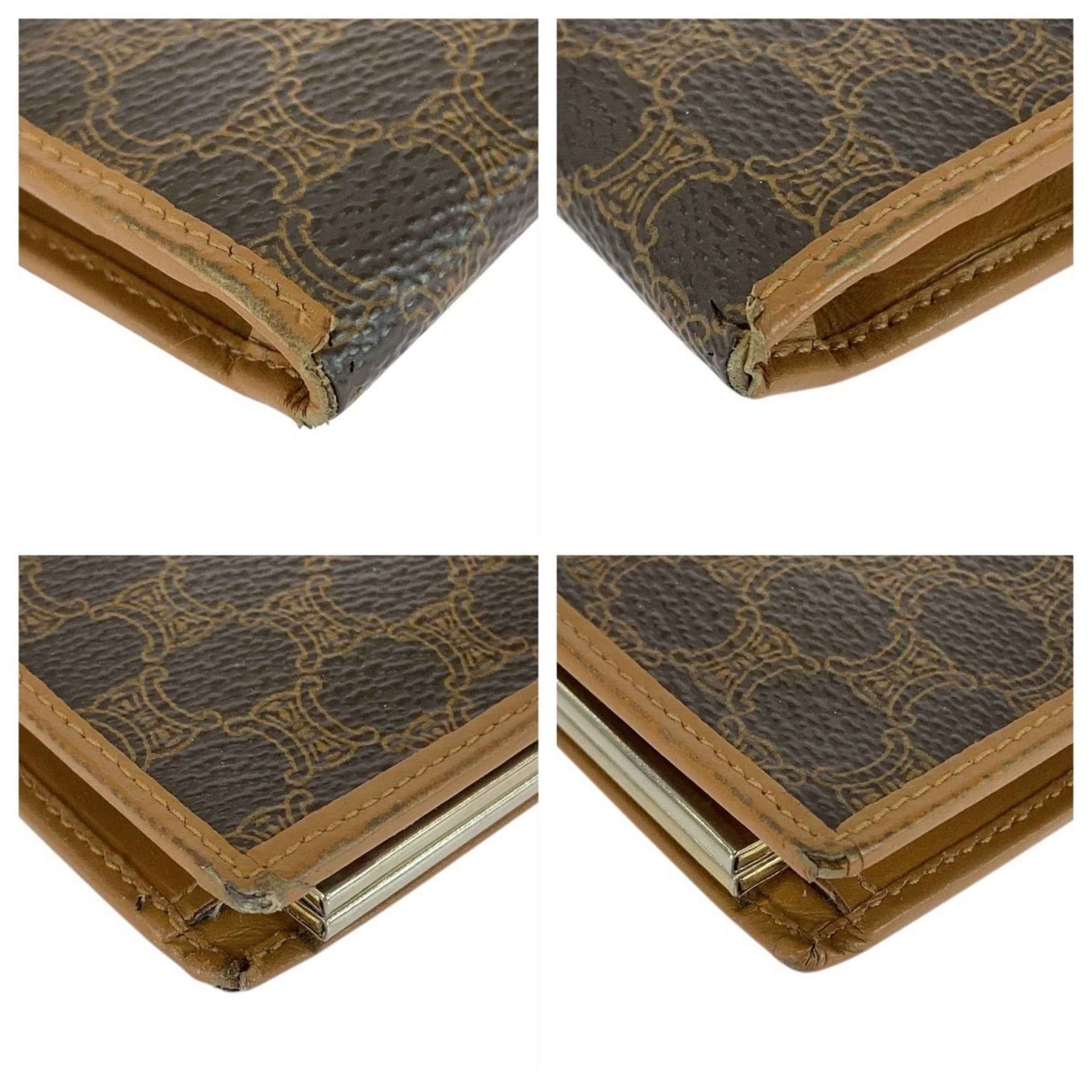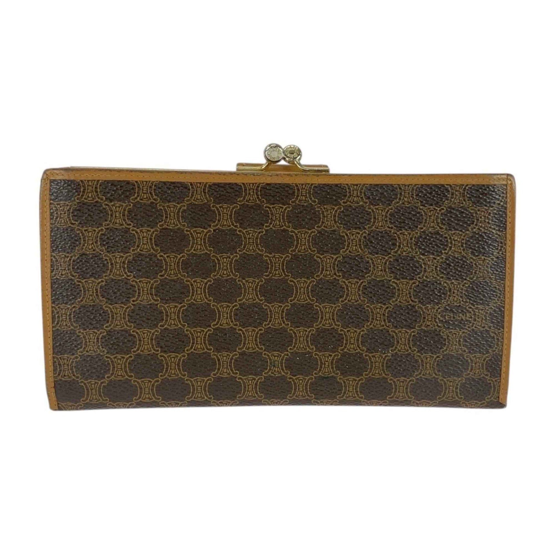 CELINE Vintage Macadam Triomphe Brown Leather Long Wallet with Gold Hardware for Women
