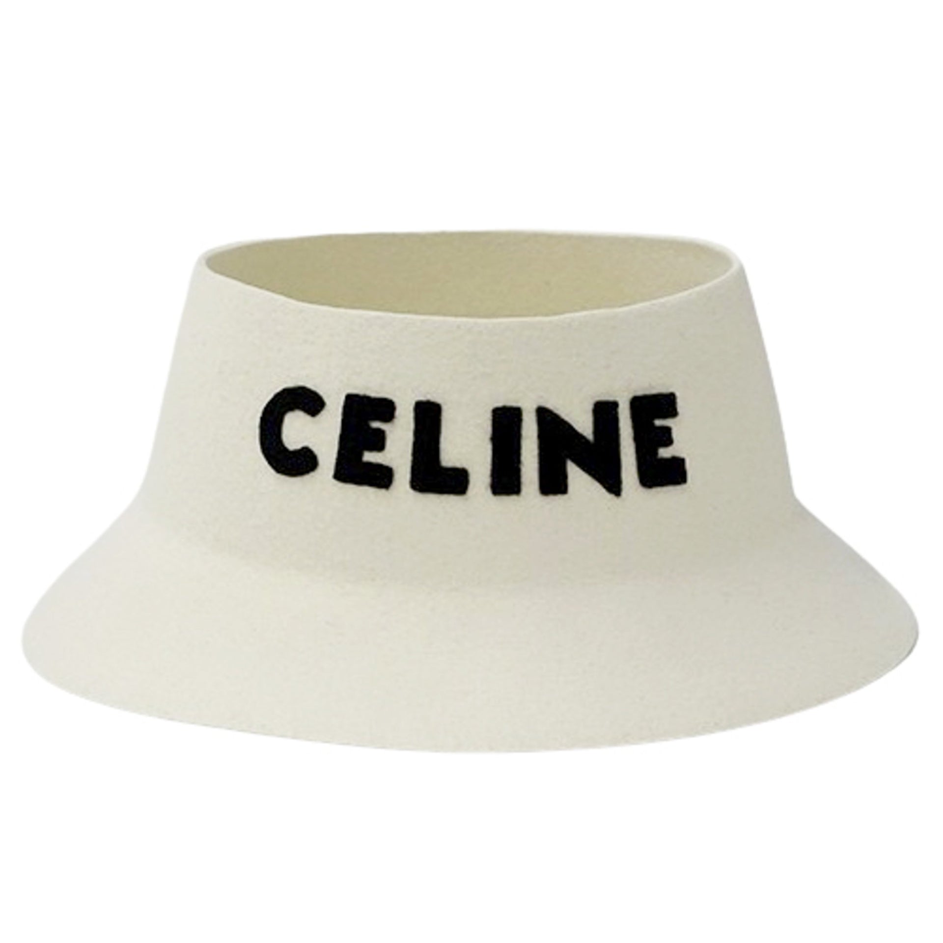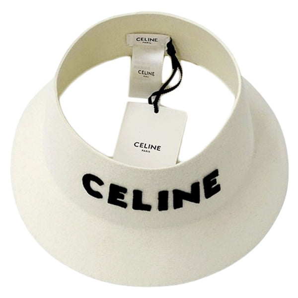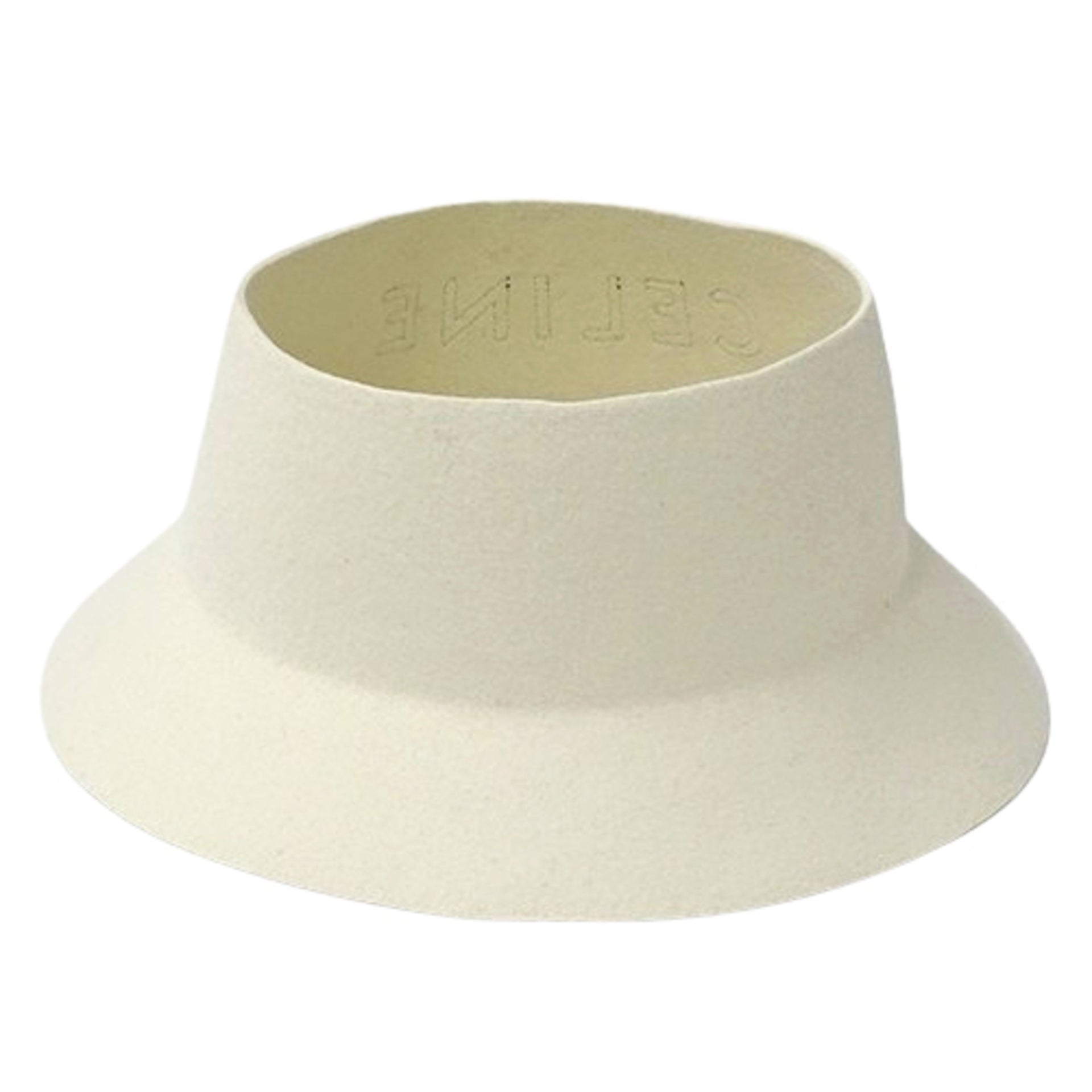 Celine Women\'s Crownless Hat, Rabbit Hair Felt, White, Size M, Logo