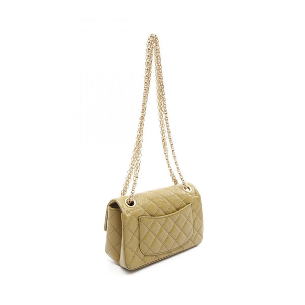 CHANEL 2.55 Matelasse Mademoiselle Chain Shoulder Bag Calfskin (Cowhide) Women\'s Khaki AS0874