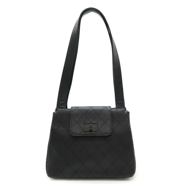 CHANEL 2.55 Matelasse Shoulder Bag Tote Leather Black Hardware