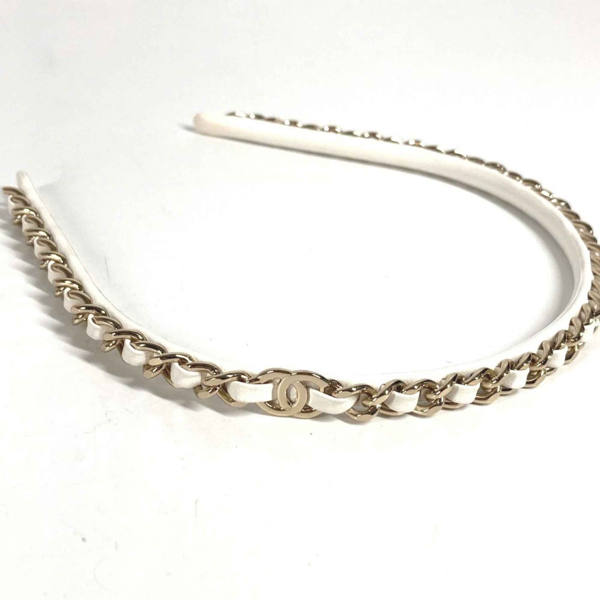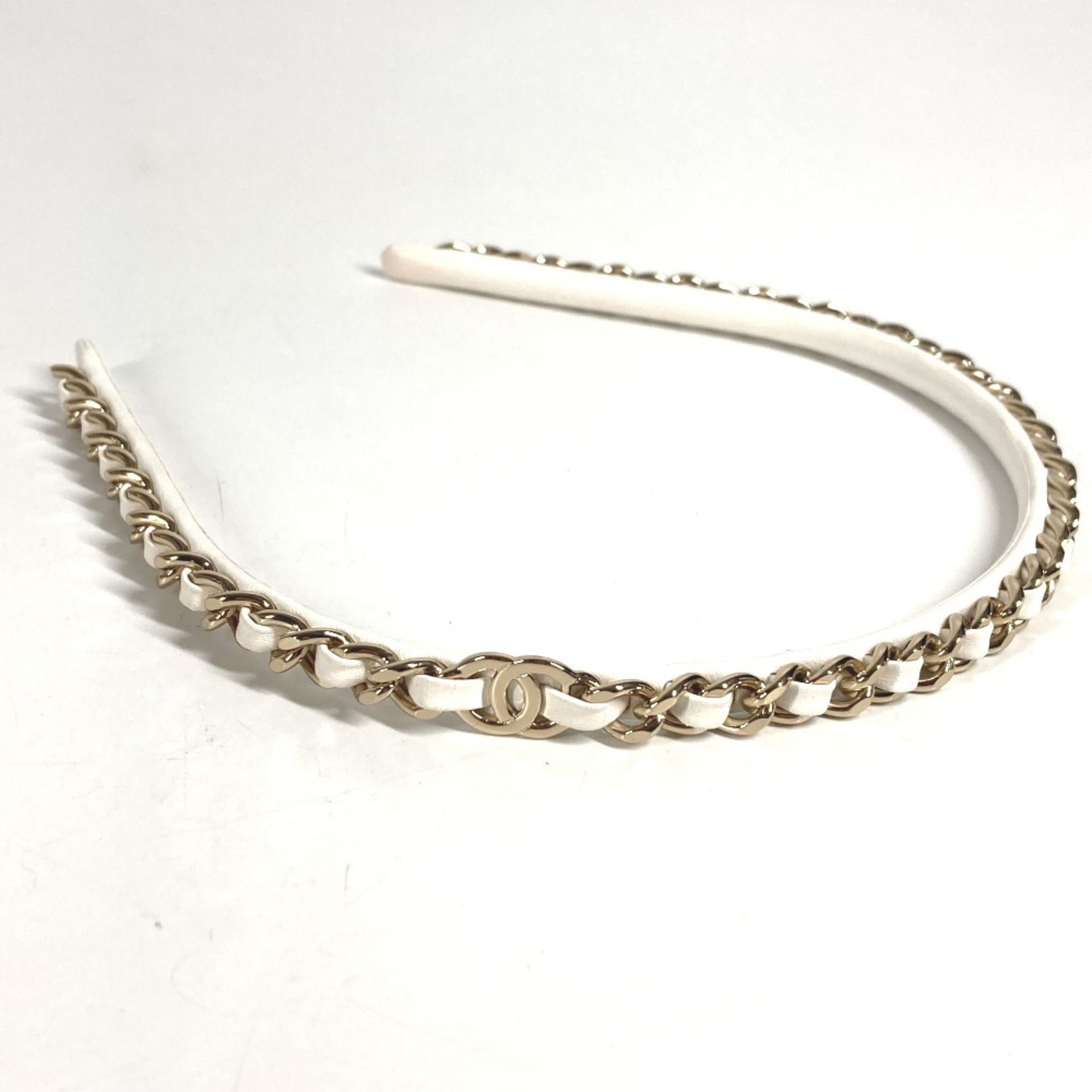 CHANEL 22S Chain CC Coco Mark Hair Accessory Headband Leather Women\'s White