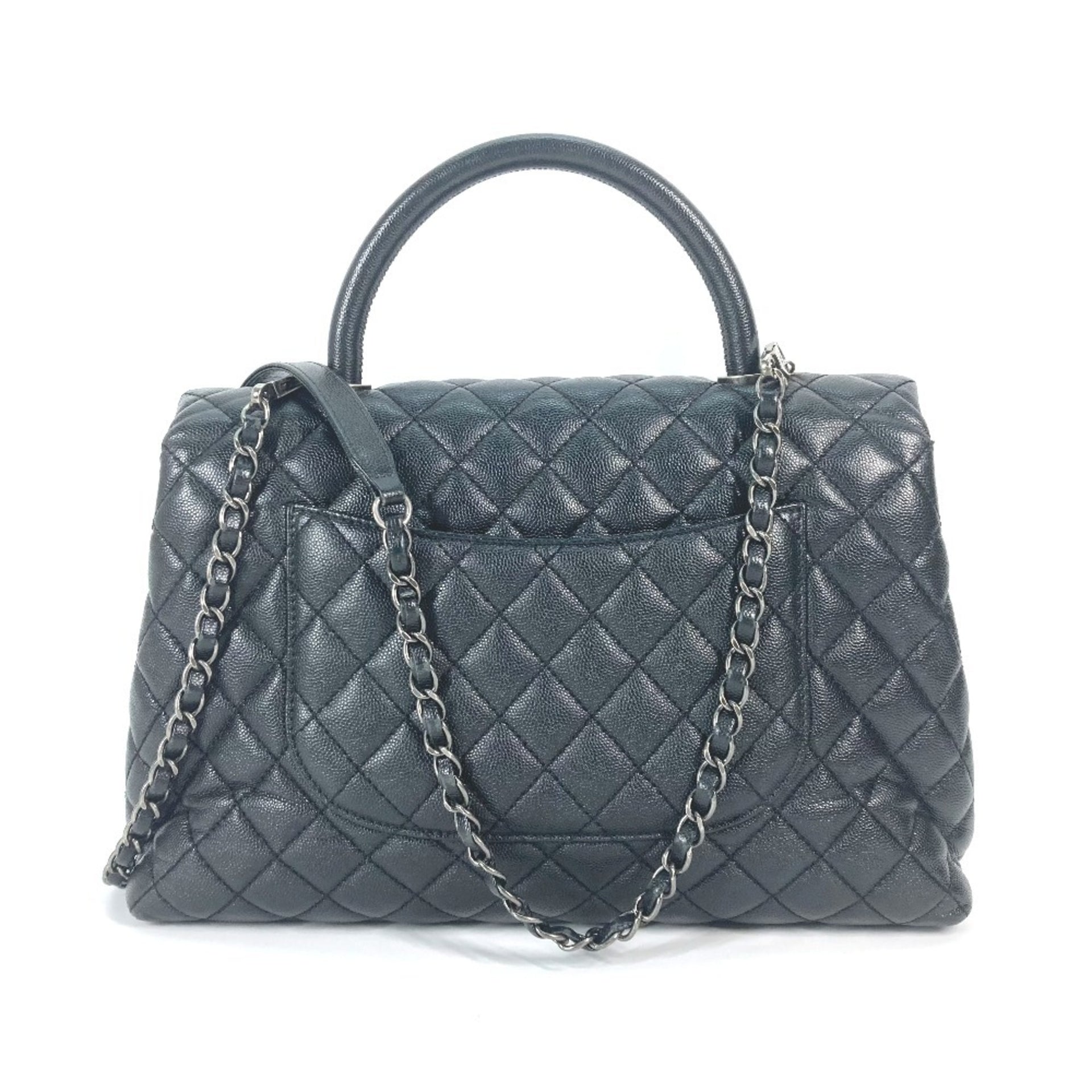 CHANEL A92991 Top Handle Chain CC Coco Mark Quilted Matelasse 2-Way Shoulder/Handbag in Caviar Skin, Black