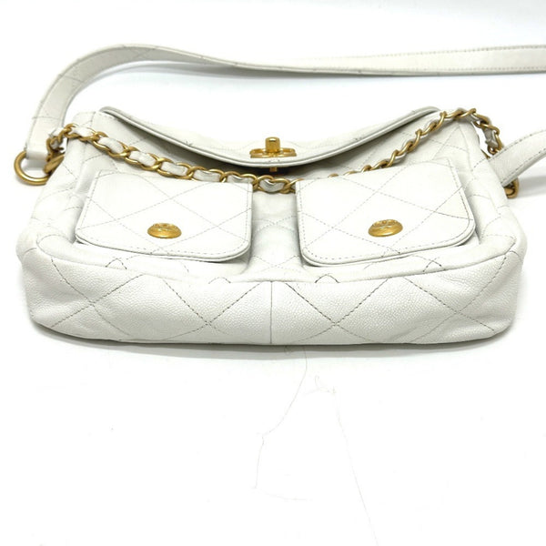 CHANEL AS5384B Matelasse Double Pocket 2-Way Hobo Bag Shoulder in Caviar Leather, White