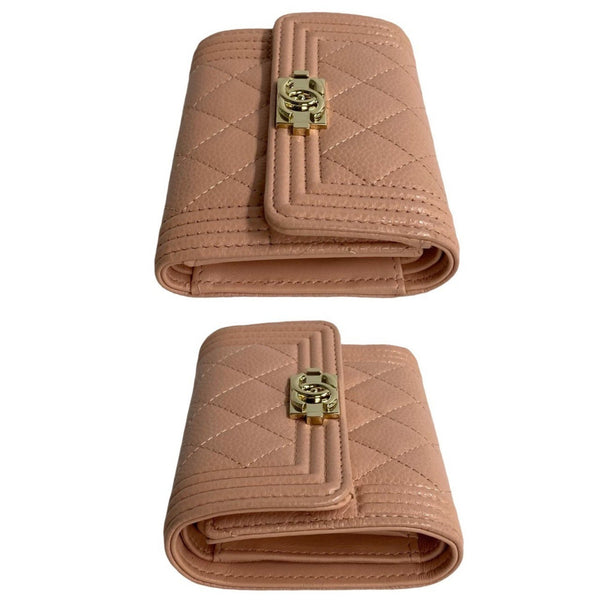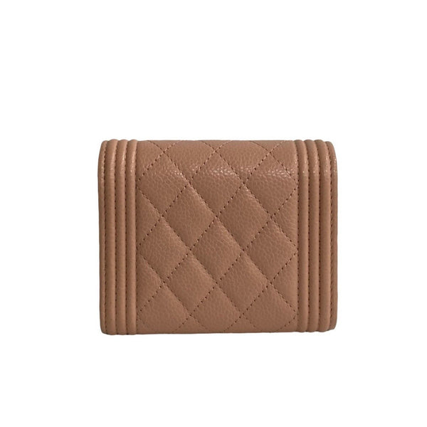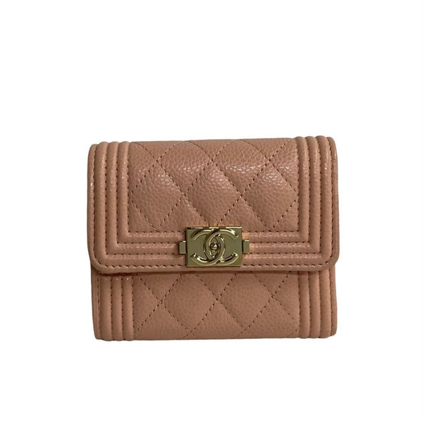CHANEL Boy Chanel Coco Mark Caviar Leather Tri-fold Mini Wallet Pink pge94-6