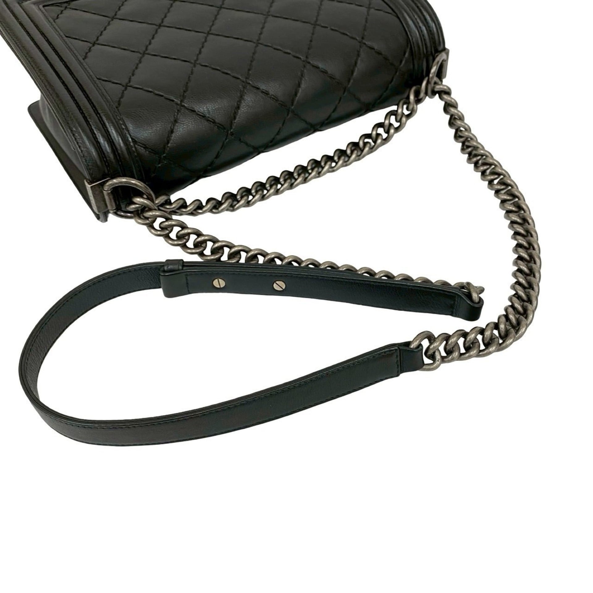 CHANEL Boy Chanel Coco Mark Leather Chain Semi Shoulder Bag Black 39397