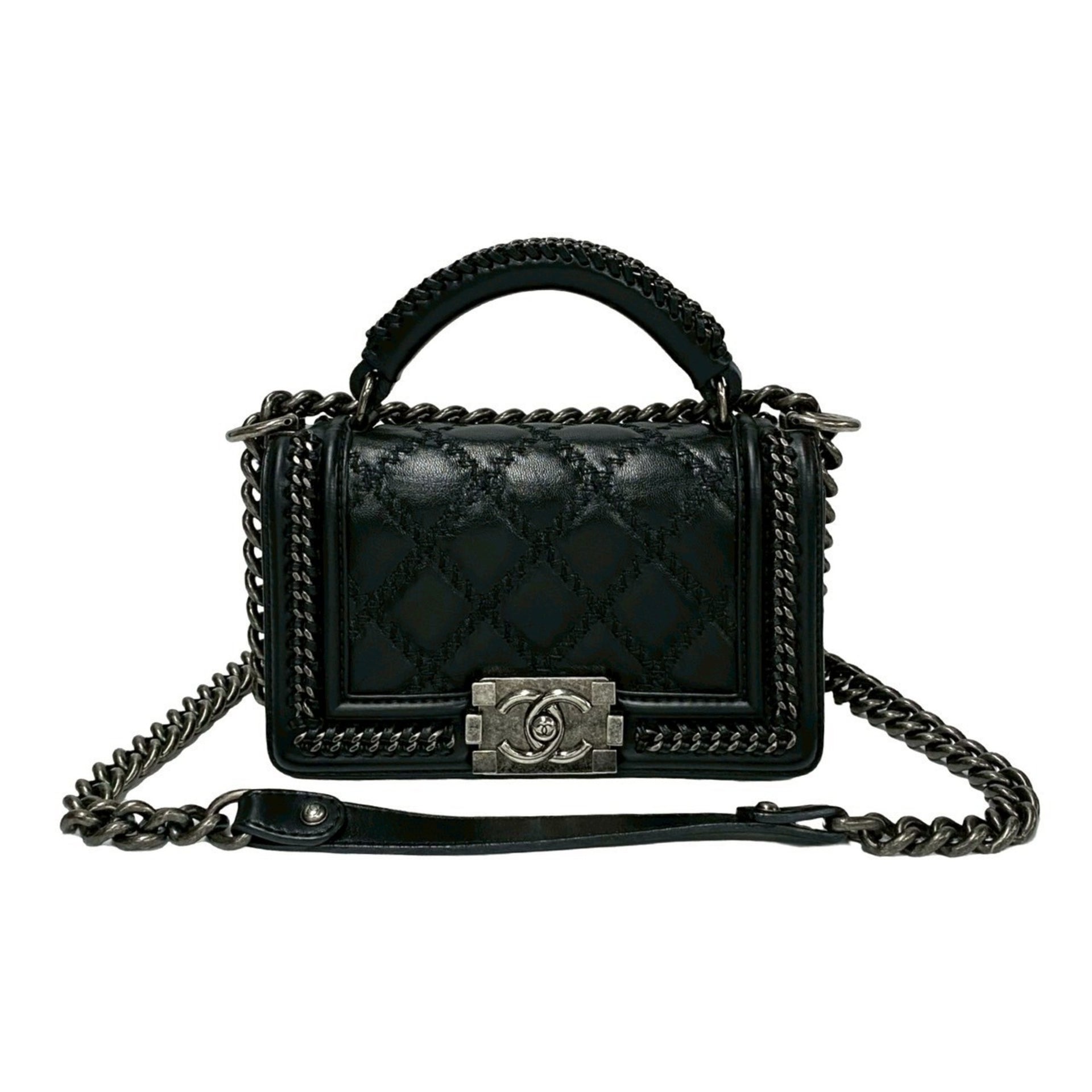 CHANEL Boy Chanel Leather Chain 2-Way Shoulder Bag/Handbag/Semi-Shoulder Bag, Black, 733-2