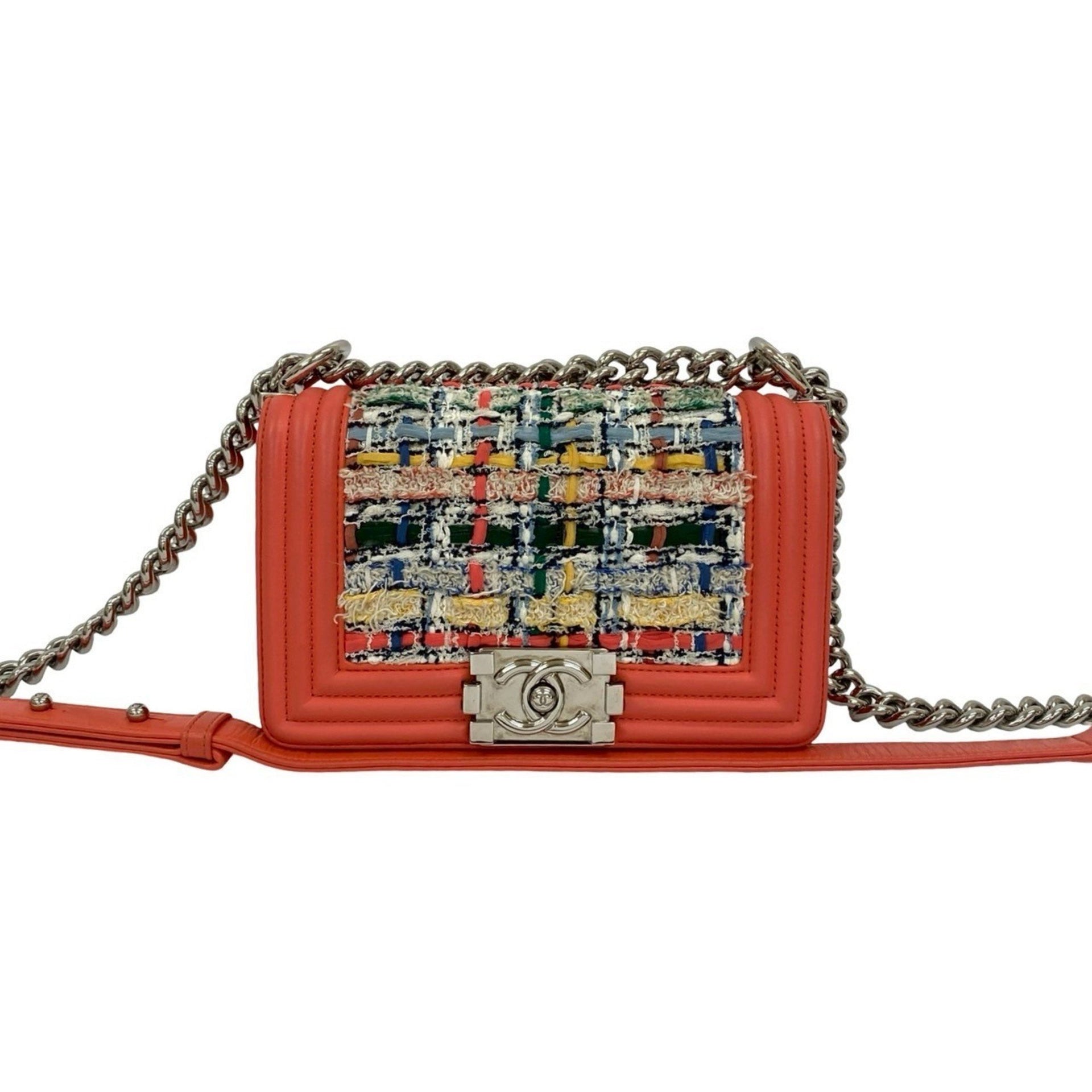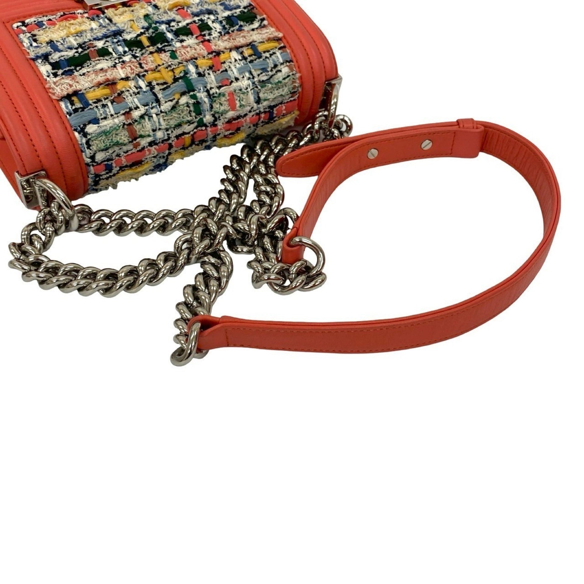 CHANEL Boy Chanel Leather Tweed Shoulder Bag in Pink and Multicolor (18464)