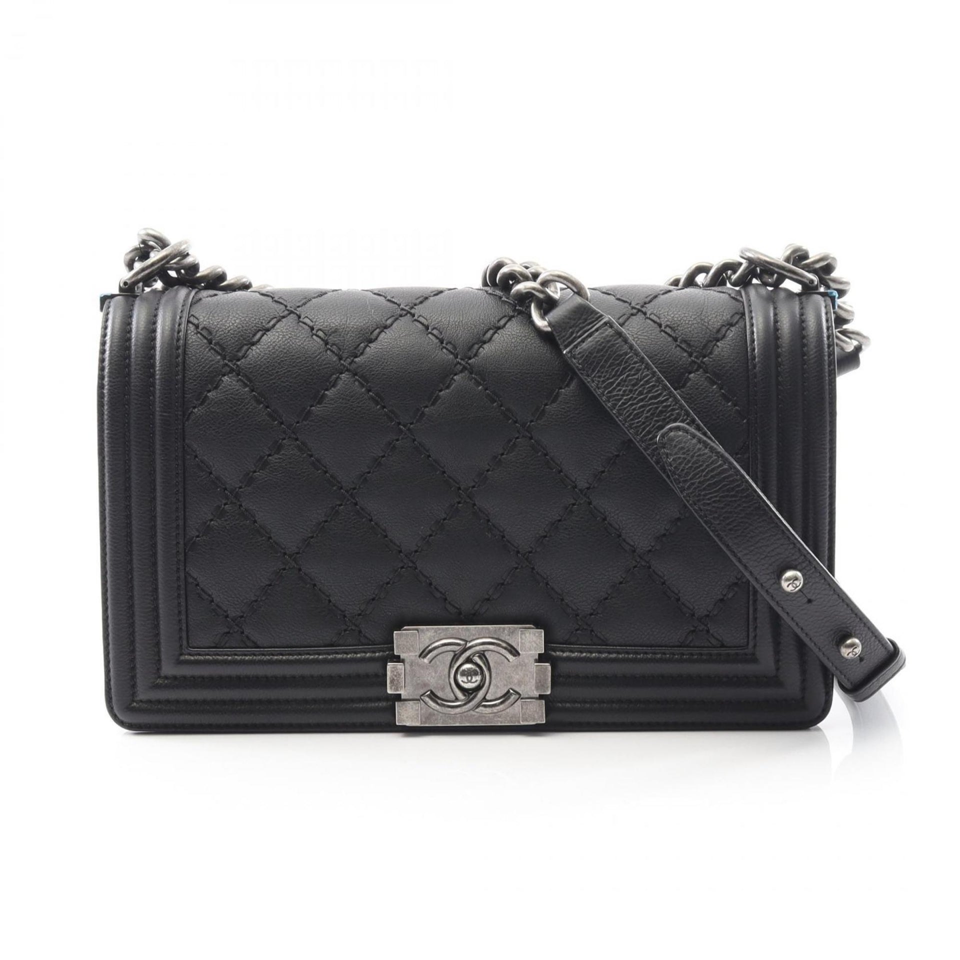 CHANEL Boy Chanel Shoulder Bag, Leather, Women\'s, Black, A67086