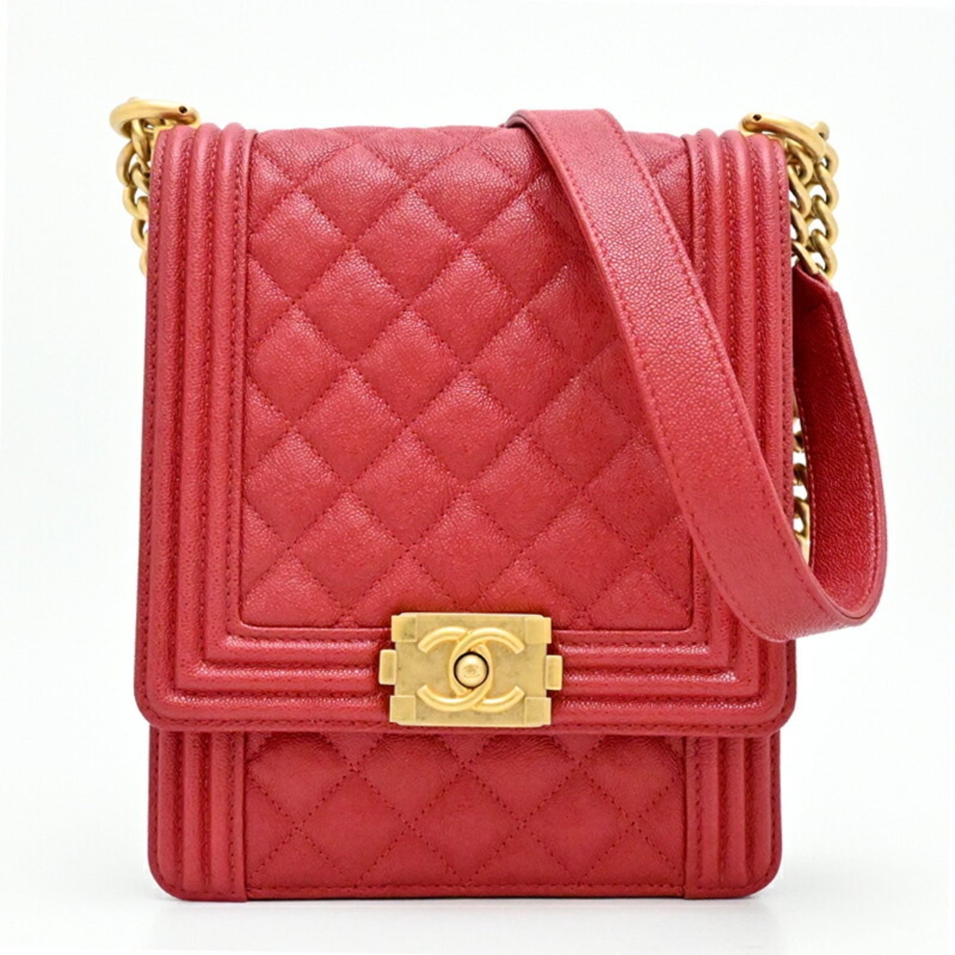 CHANEL Boy Chanel Women\'s Shoulder Bag AS0130 Caviar Leather Red