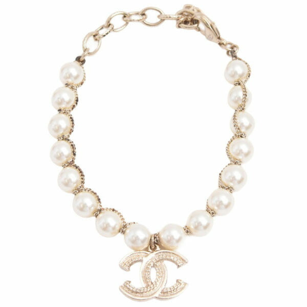 Chanel bracelet for women, fake pearl chain, Coco Mark motif, A19 GP CHANEL