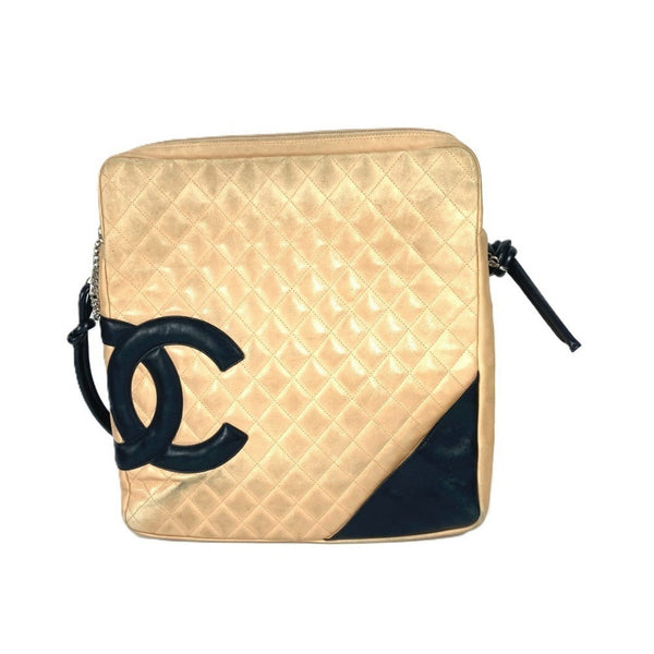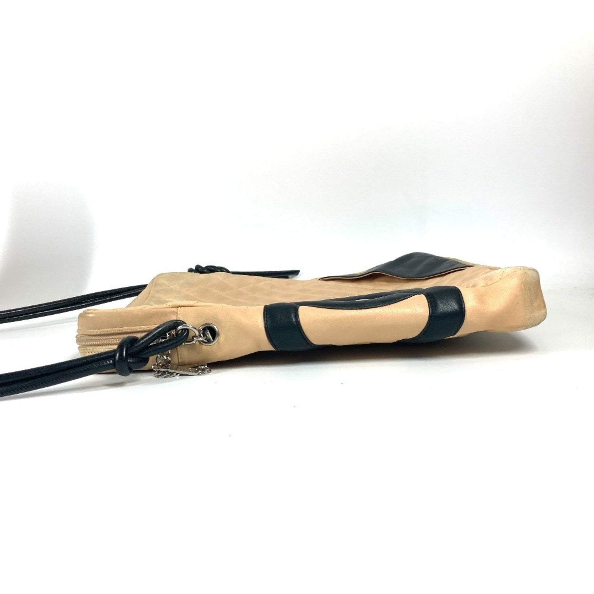 CHANEL Cambon Line CC Coco Mark Large Square Crossbody Bicolor Shoulder Bag Leather Women\'s Beige