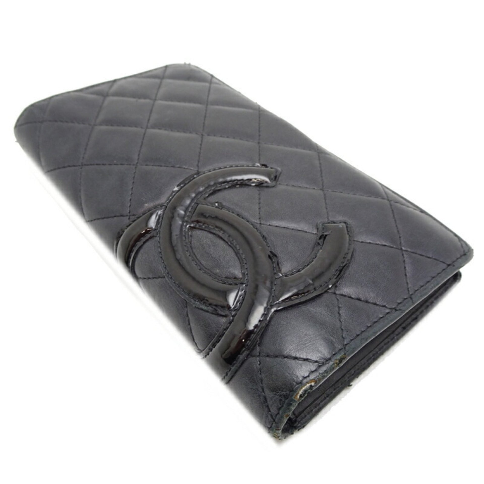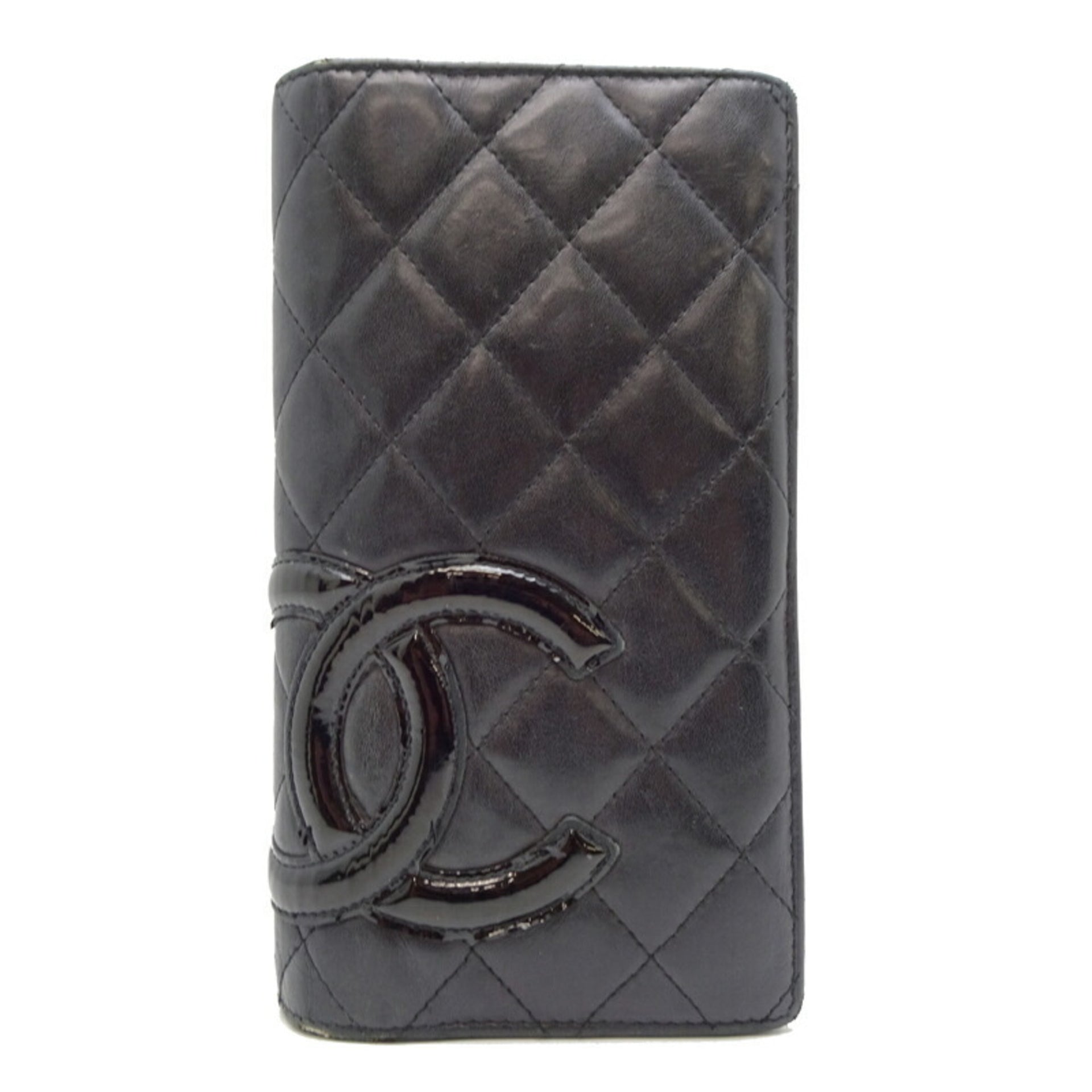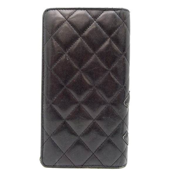 Chanel Cambon Line Coco Mark Long Wallet Women\'s Bi-fold A26717 Calfskin Black